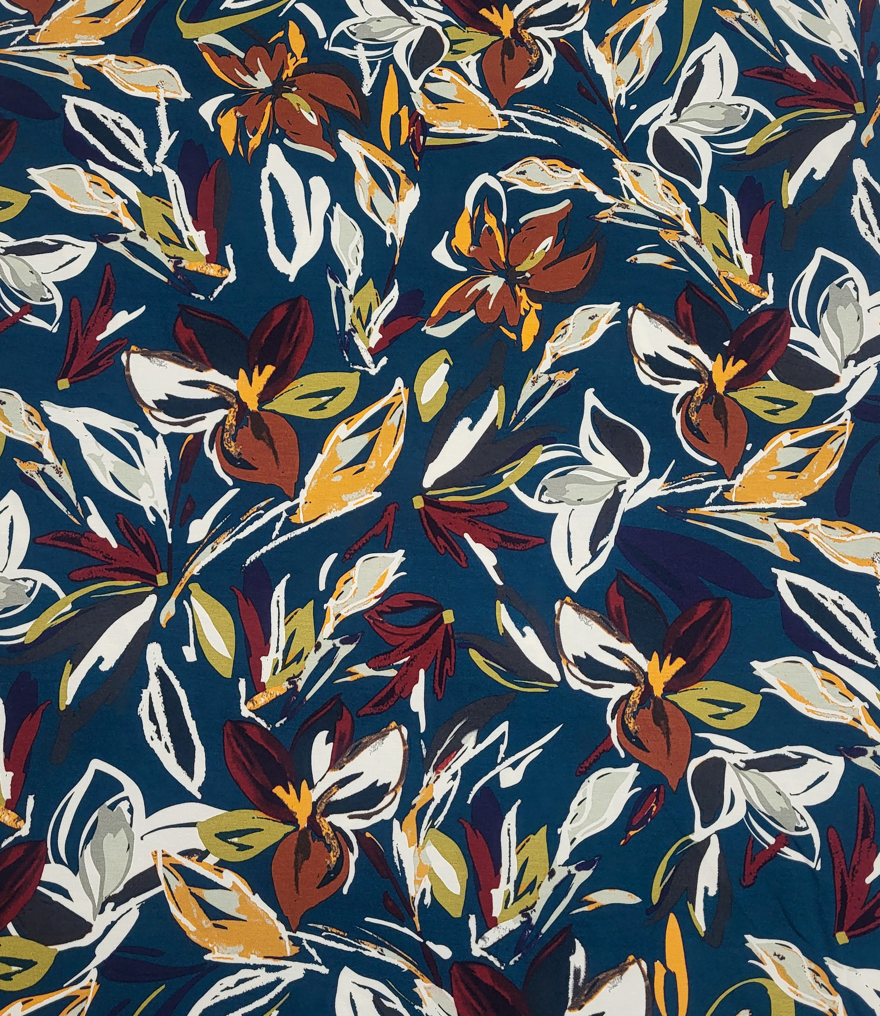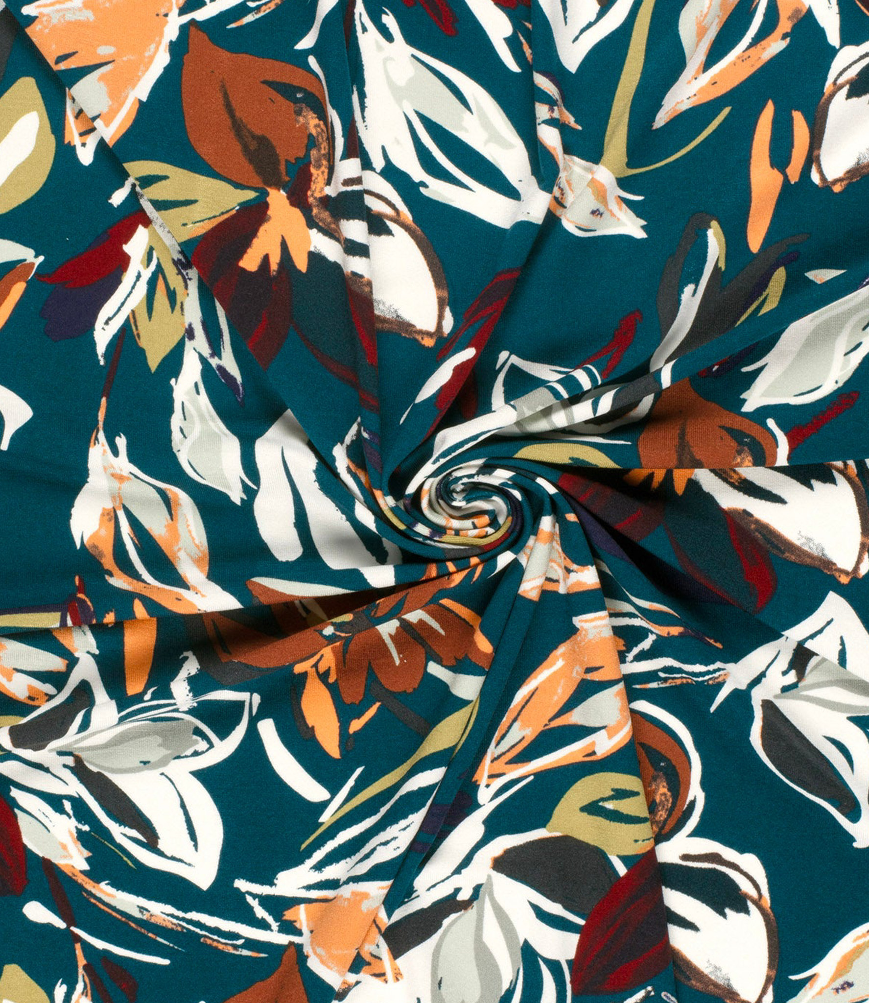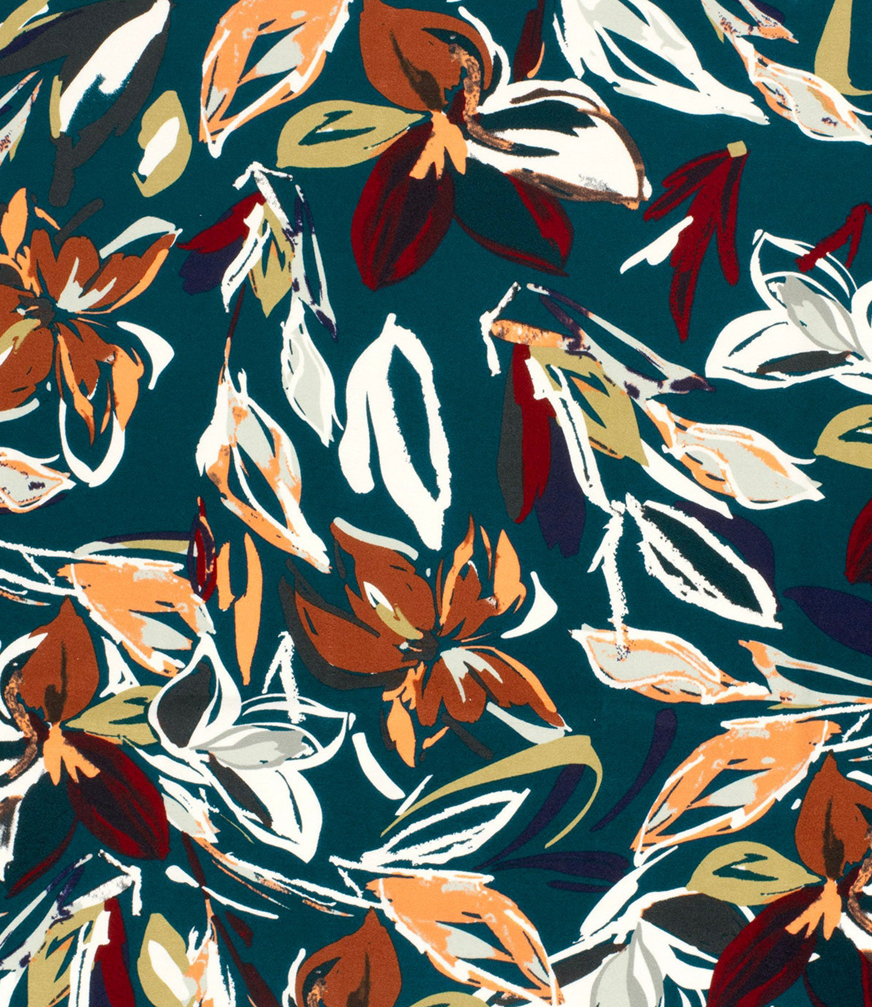 petrol green and beautiful flowers - viscose jersey - Madeline De Stoffenmadam