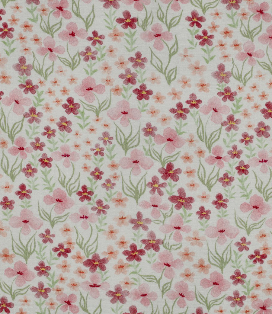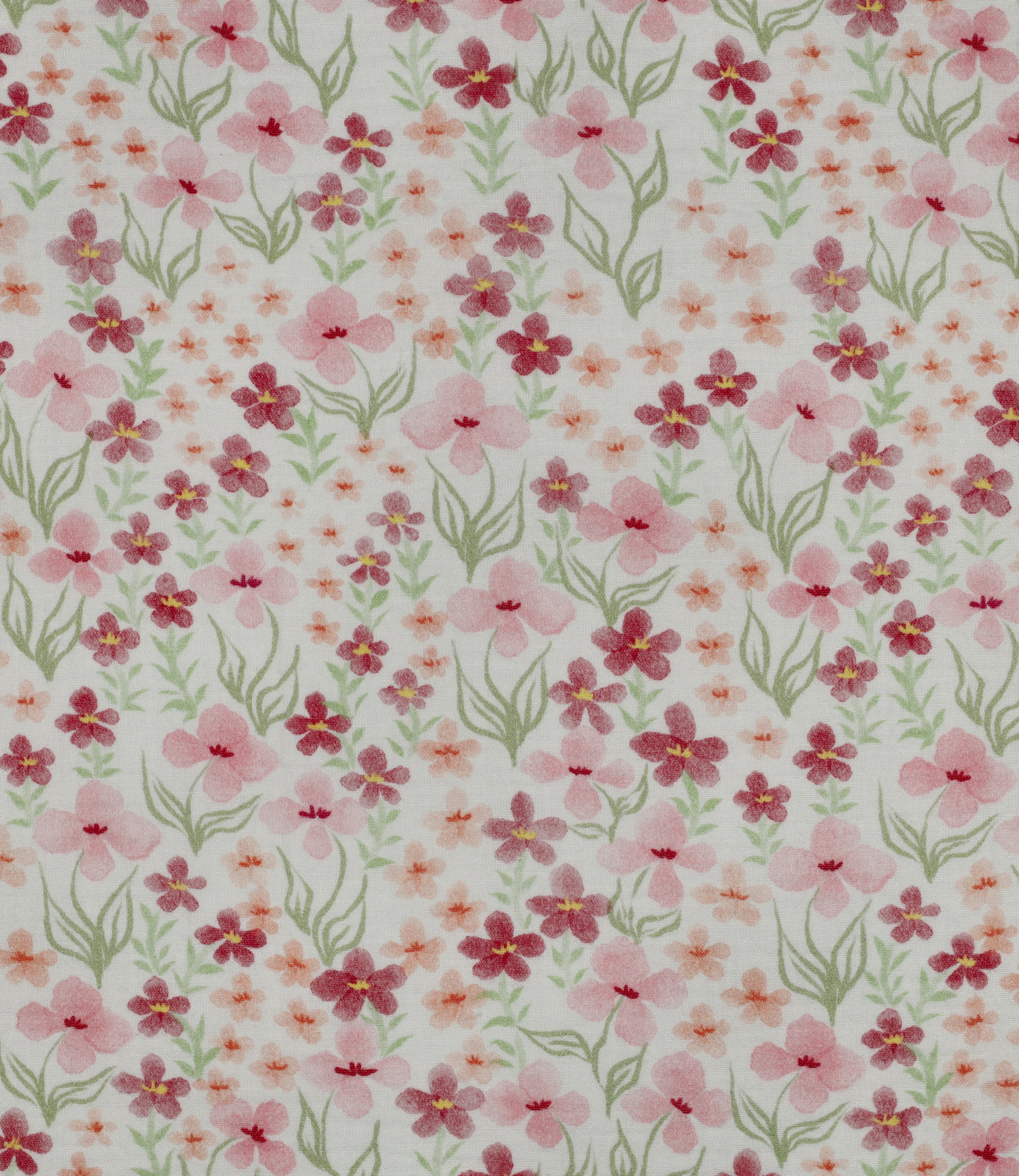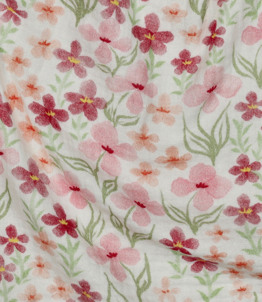 Beautiful quality double gauze with pink flowers. Perfect for dresses, tops, T-shirts, and baby and children's items (nests, blankets, etc.). Wonderfully soft. OEKO-Tex certified.