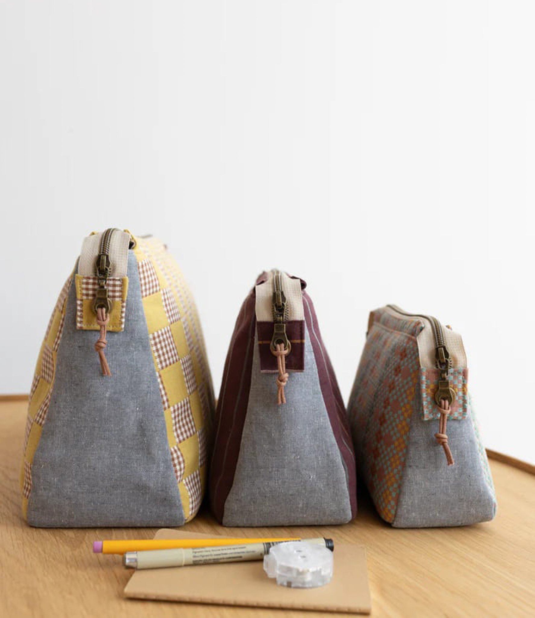 A fun zippered pencil case you'll love making and using, available in three sizes. All sizes have a mesh divider to keep everything organized. Medium and Large sizes have an inner zippered pocket.