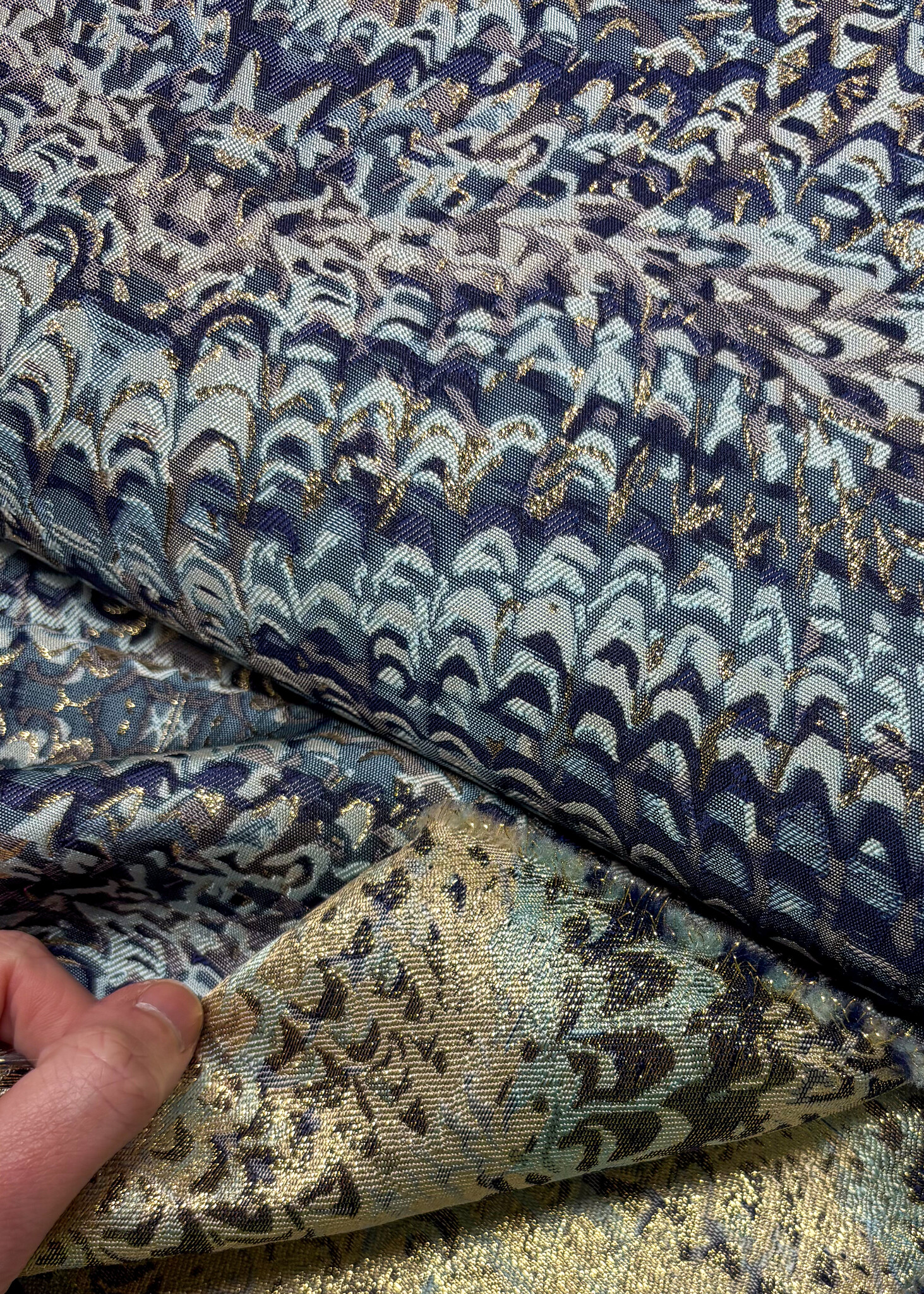 A beautiful, woven jacquard with lurex. Ideal for blazers, straight skirts, ... Also very cool as an accent on the sleeve of the Laure sweater .