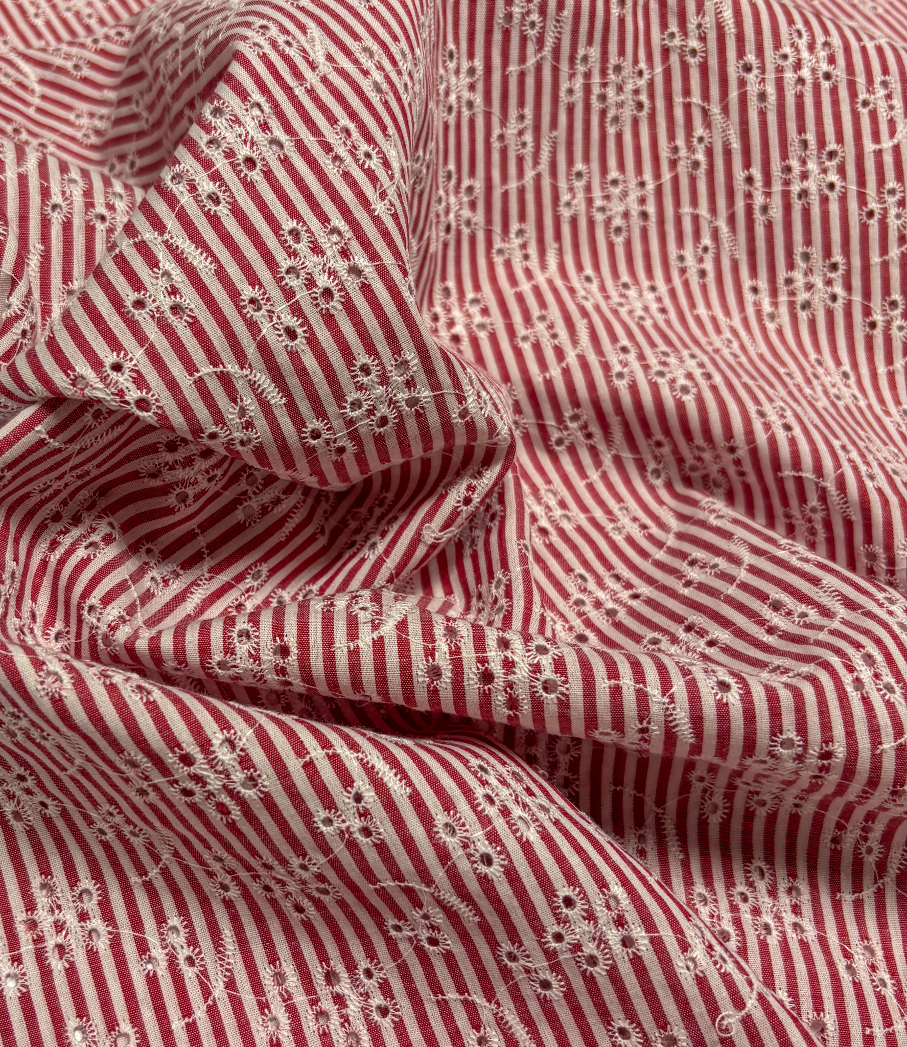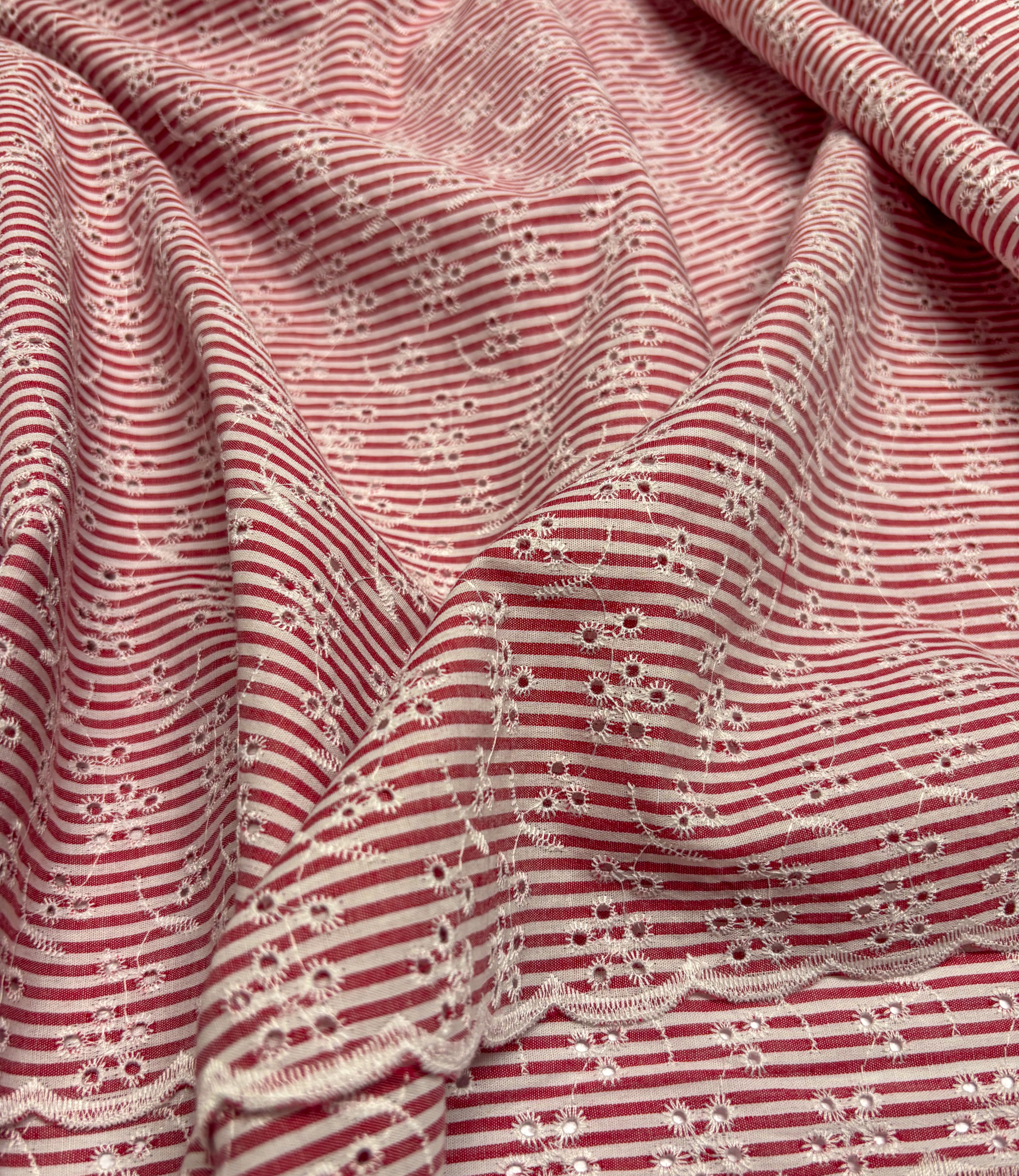 A beautiful cotton with embroidered flowers. We recommend using this fabric widthwise rather than lengthwise. Very lovely for airy blouses and dresses. Swafing Stoffe.