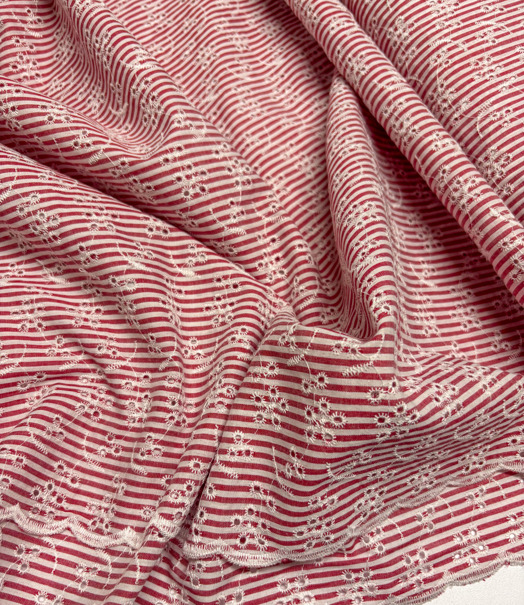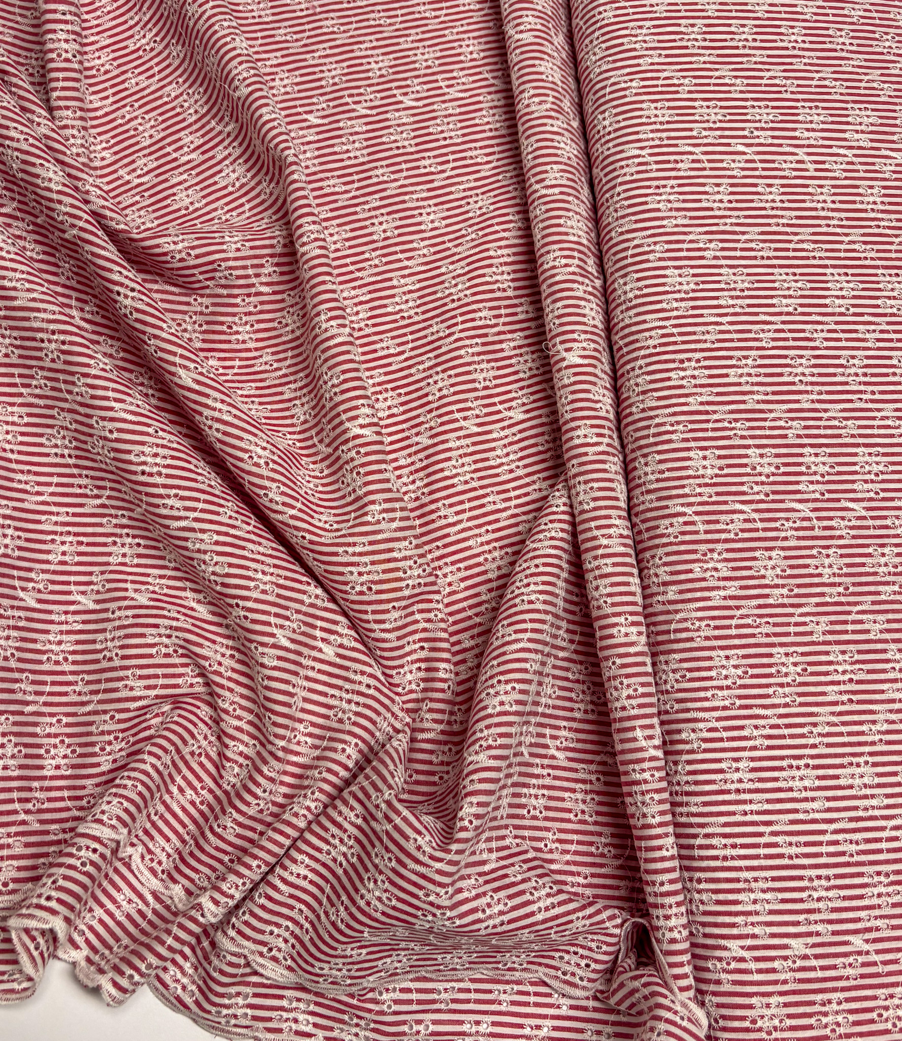 Fabric width: 130 cm (from the end of one scalloped edge to the other)