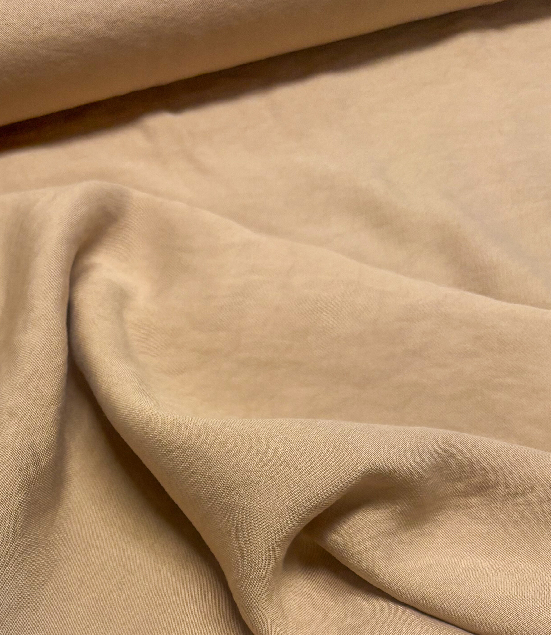 A plain viscose twill. It drapes well and doesn't wrinkle.