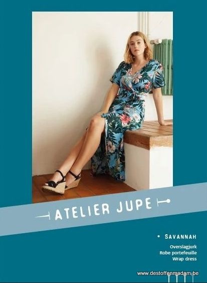 Savannah is a smooth wrap dress with short sleeves. Thanks to the matching top with fine pleats and the uneven skirt, this dress has a very feminine and elegant look. We really love this wrap dress and therefore like to share the pleasure of this beautiful pattern.
