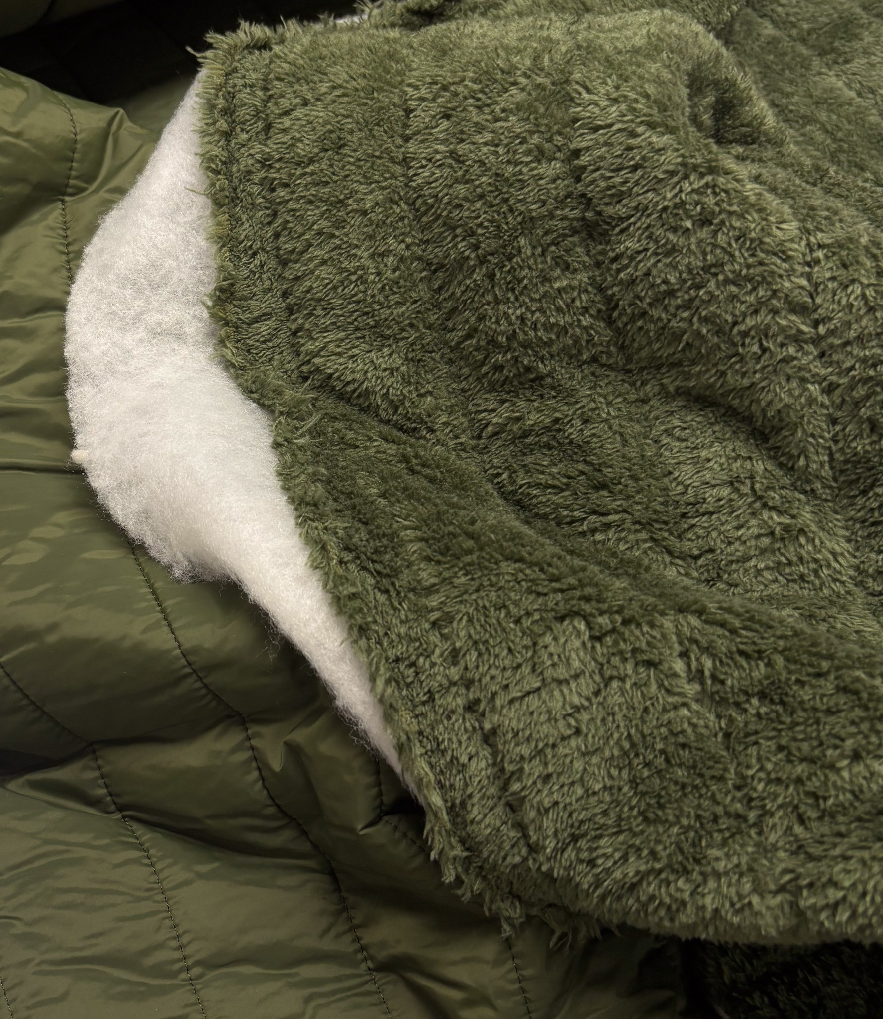 A beautiful quilted and quilted coat fabric. Inside, this fabric has a soft and warm layer of teddy fleece. Perfect for coats and cardigans. The fabric is finished on both sides and therefore does not need to be lined. This fabric is water-repellent.