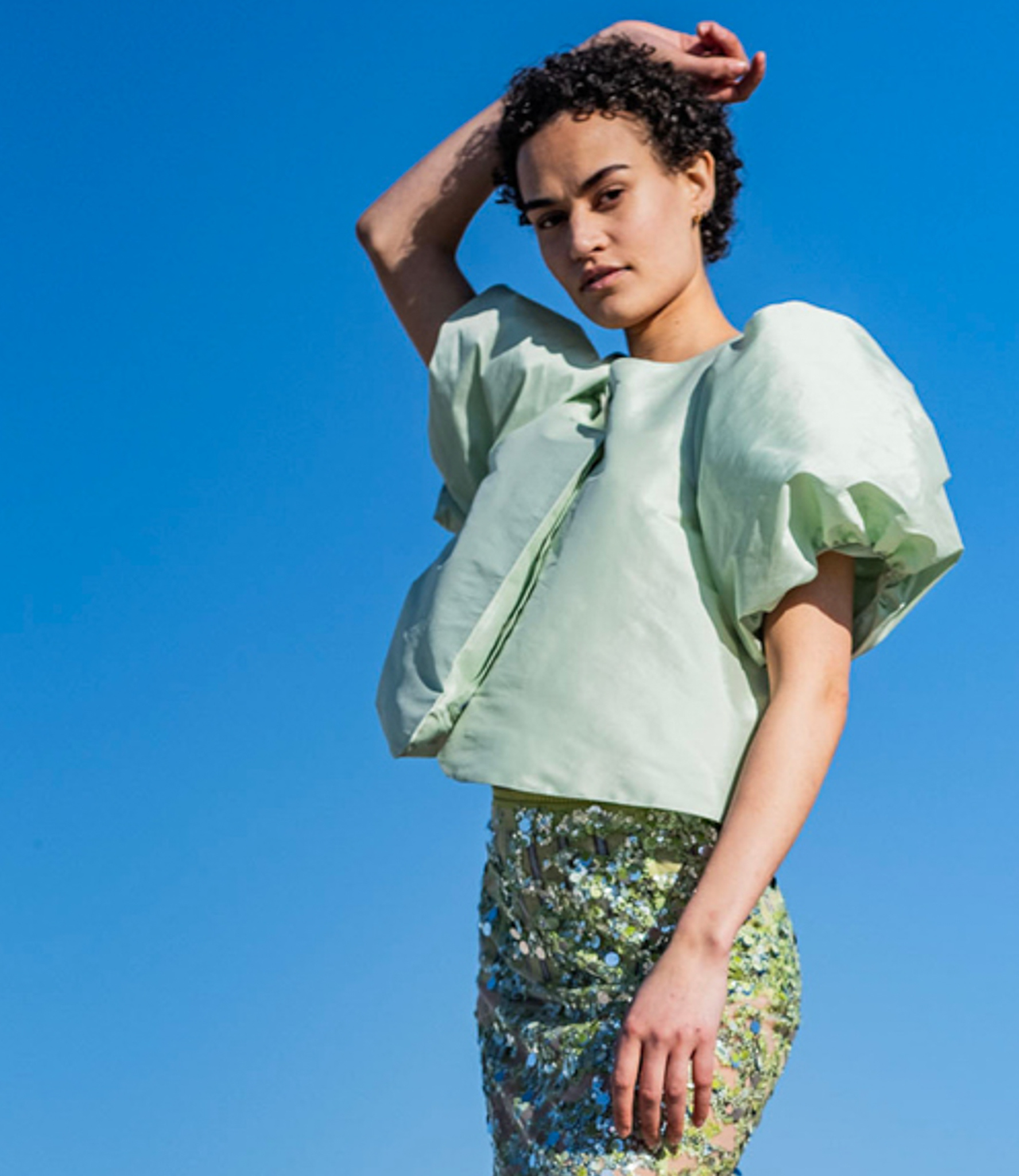Woven taffeta from the Fibre Mood collection. Used in the Fibre Mood magazine 33 for the Star top and the Raven trousers .
