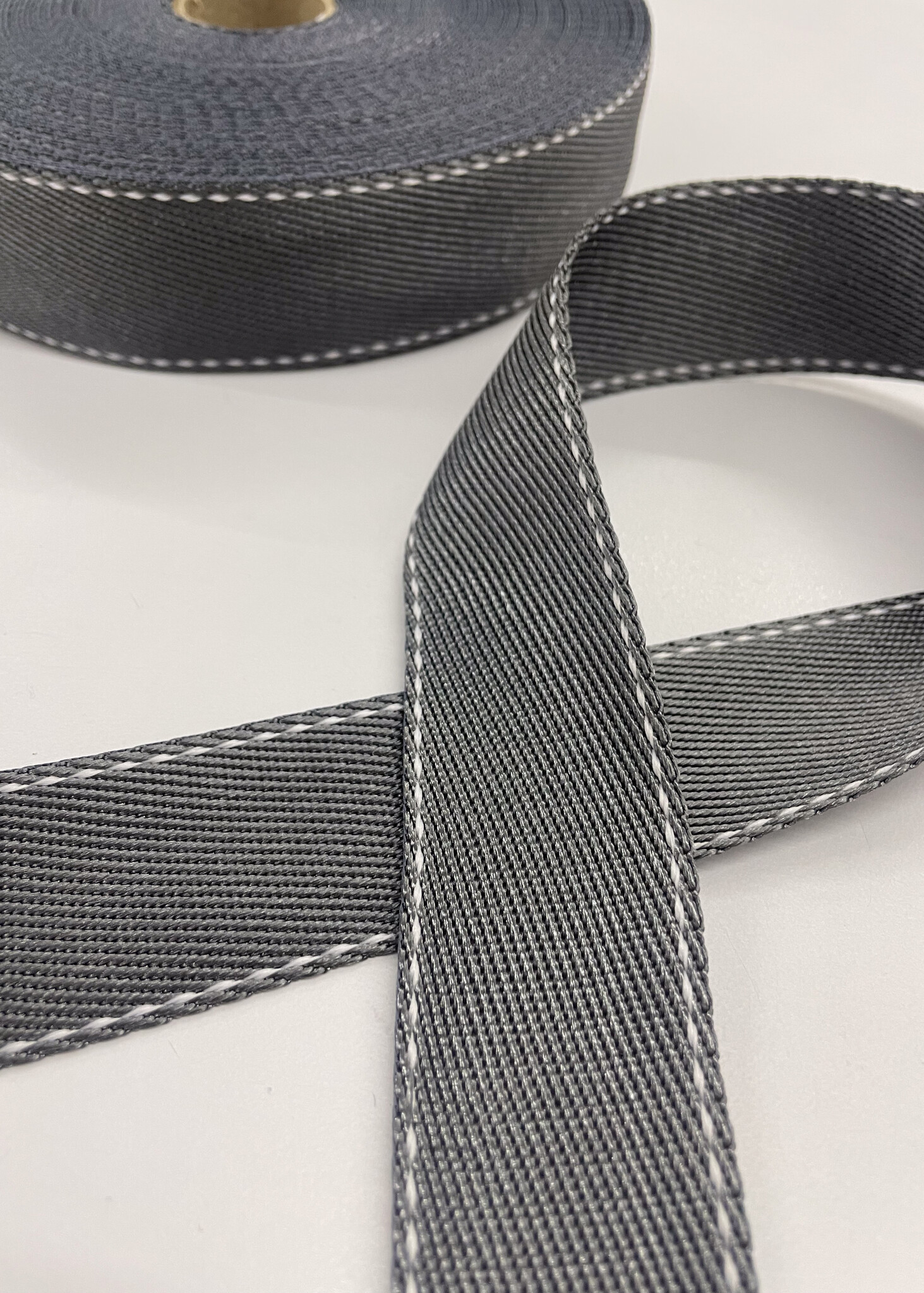 bag strap gray with white stitching line - 35 mm - Madeline De Stoffenmadam