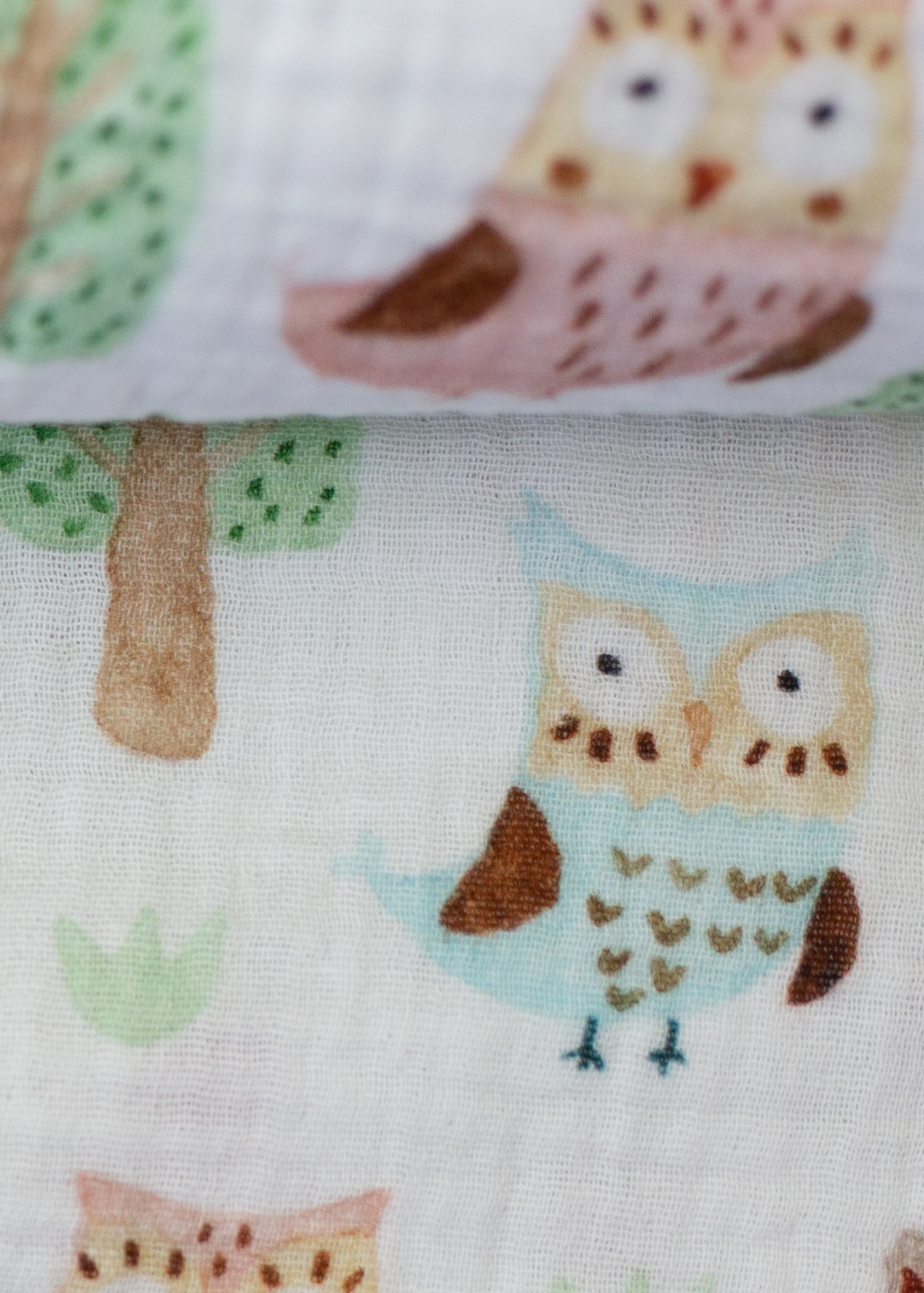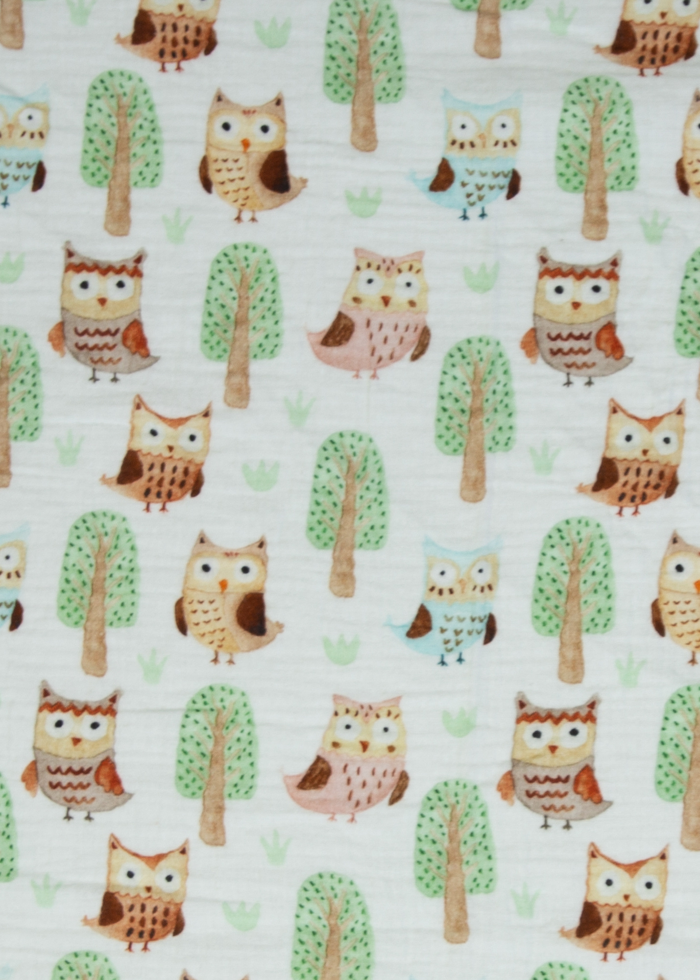 A soft tetra fabric with a nice owl print. Ideal for a blanket or sheet, children's clothes, baby cloths, ...