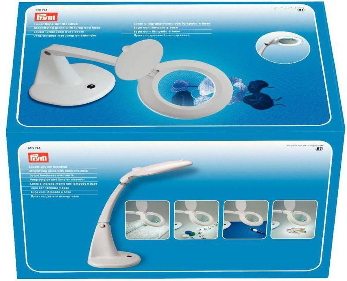 The magnifying glass with LED lamp and stand from Prym is white and a handy and versatile magnifying lamp. The arm and magnifying lamp are flexible, so you can bend it and turn it into the desired position. Thanks to the large lens of approx. 9.5 cm in diameter that magnifies 2 x and the integrated lens that magnifies 4 x, it is easy to work in small details, very pleasant if you do fine manual work.