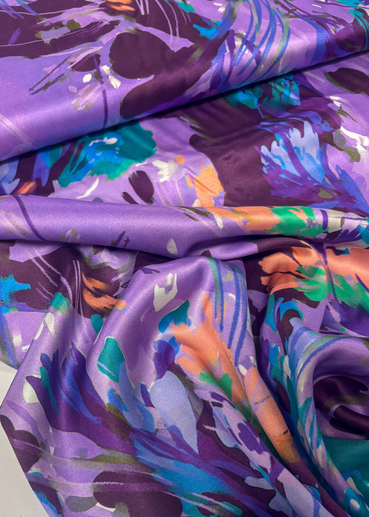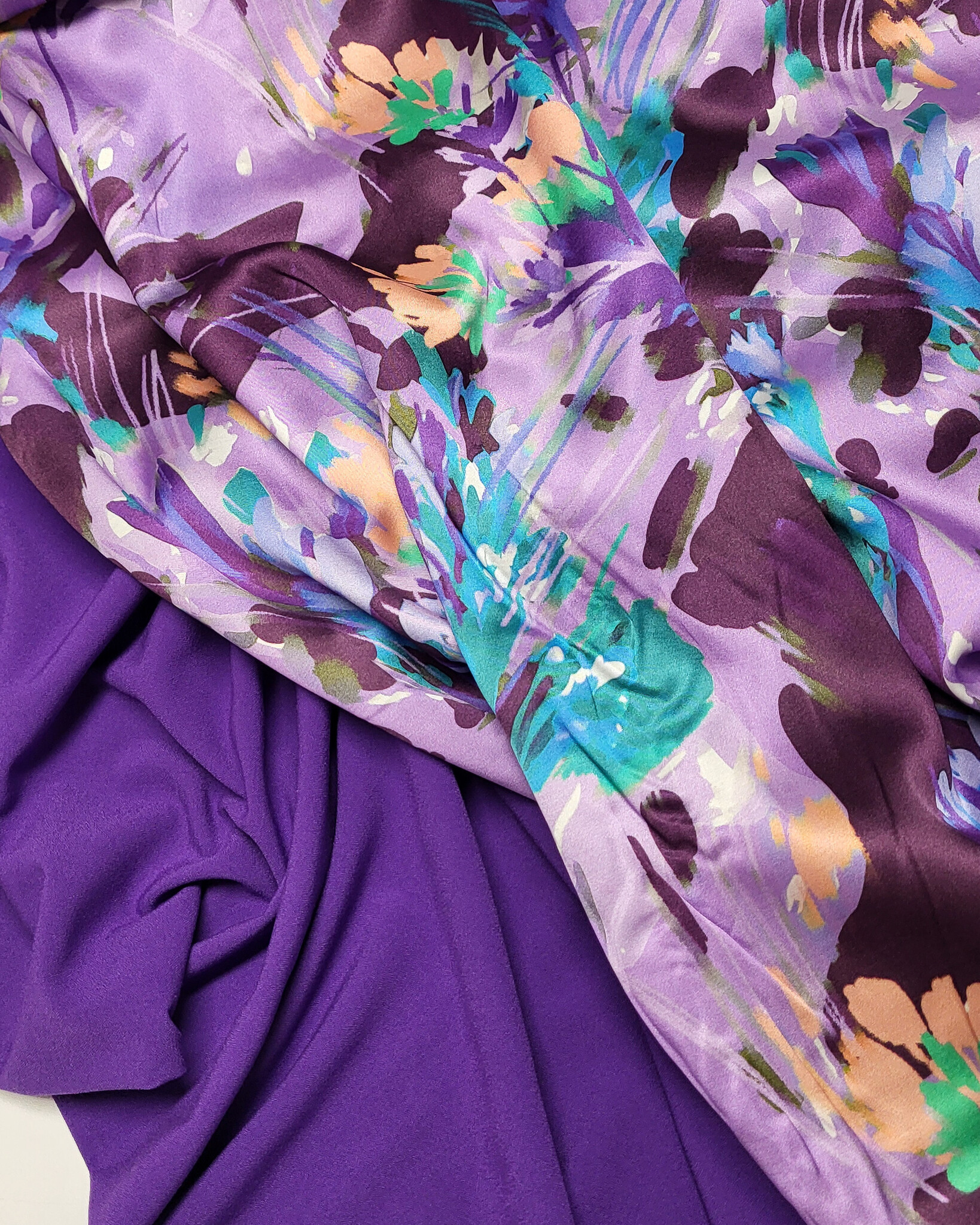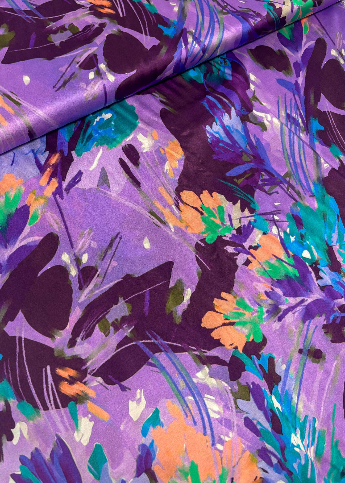 Violet flower field - beautiful satin viscose - Madeline De Stoffenmadam