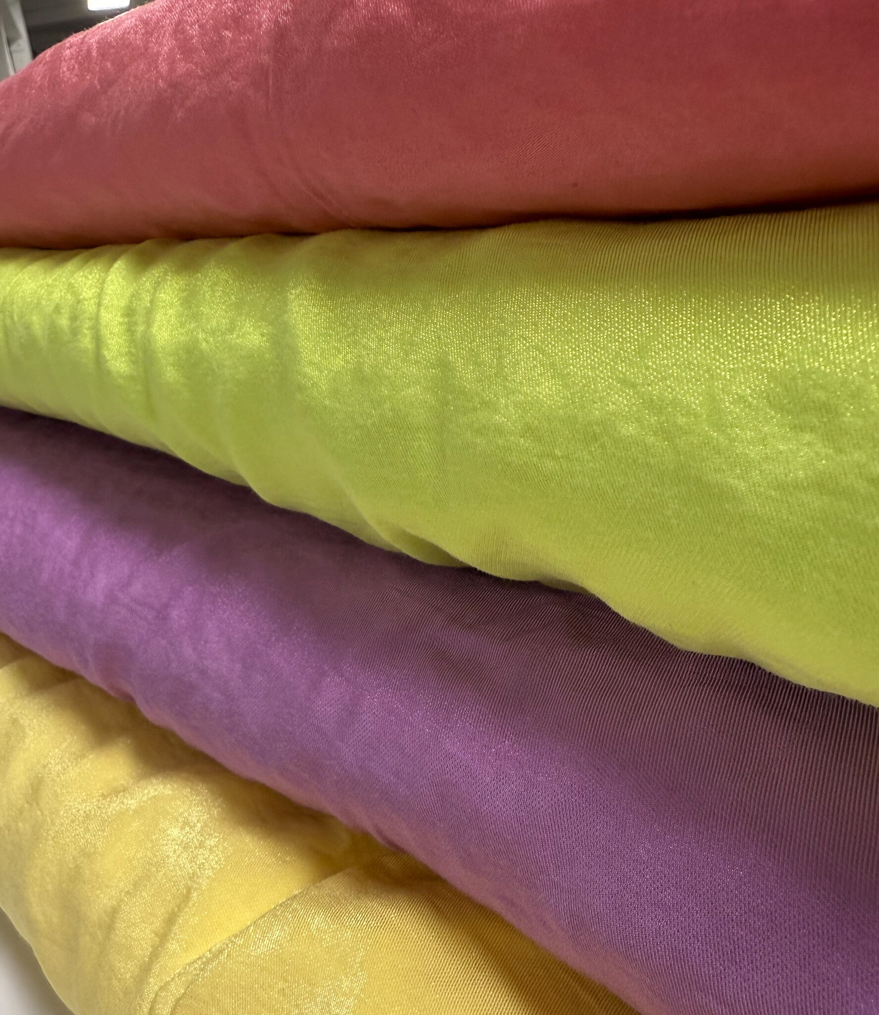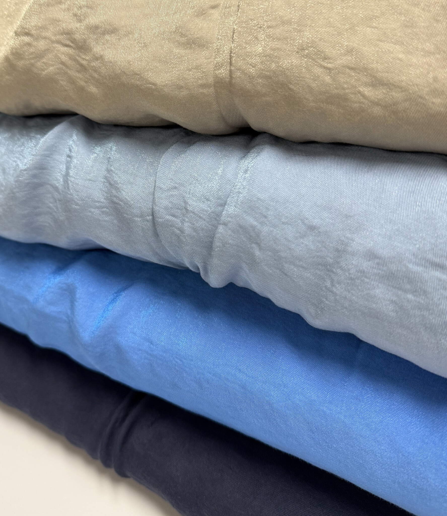 This viscose blend drapes beautifully, it is very supple and incredibly soft. There is a subtle sheen woven into it, which gives the fabric a luxurious look. The "drape", you see and hear. The fabric has a bit of body, a beautiful quality. This fabric is perfectly suited for skirts, loose trousers, light summer blazers, tops and blouses, dresses and also for gala clothing.