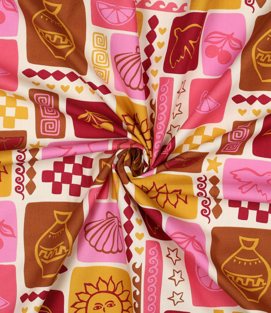 A beautiful, thin, silky-soft poplin cotton with a cheerful print. This fabric is used in Poppy Meets Pommé edition 26 .