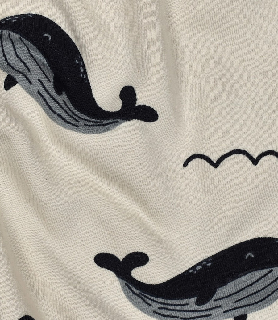 A beautiful, thick sweater with whale motifs. Wonderfully warm and perfect for layering with sweaters, pants, cardigans, dresses, etc. A soft, fleece-lined backing makes it OEKO-Tex certified.