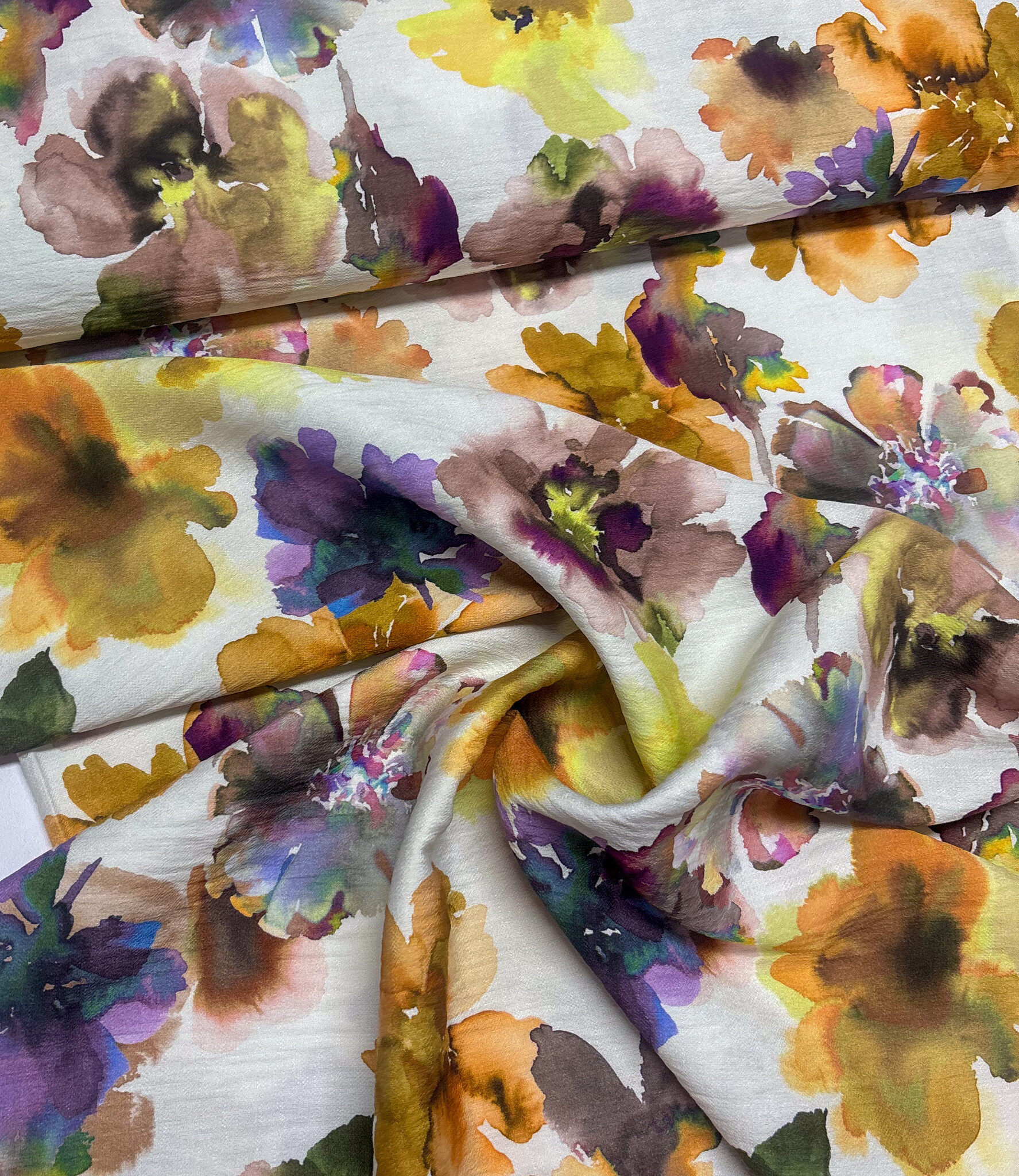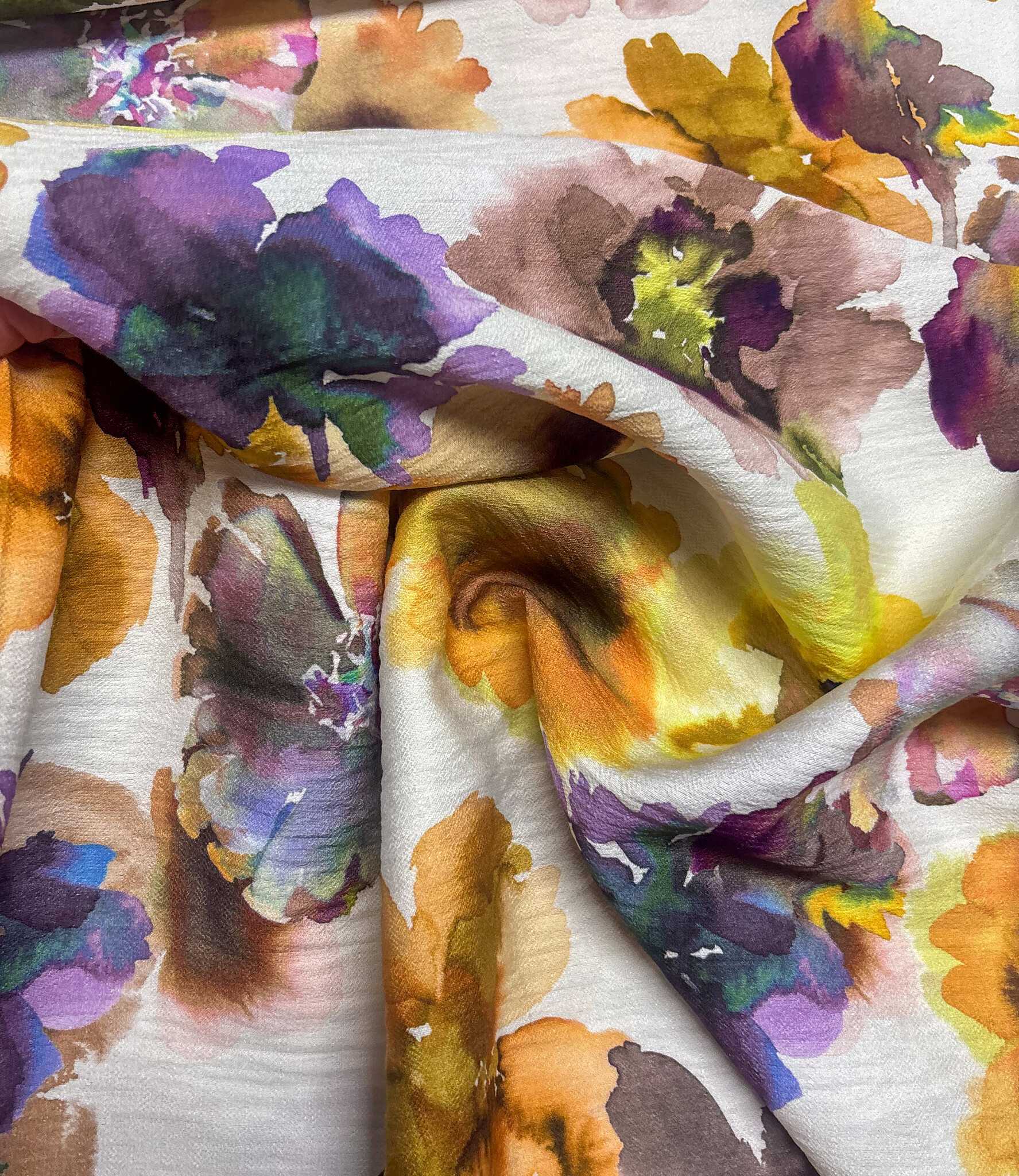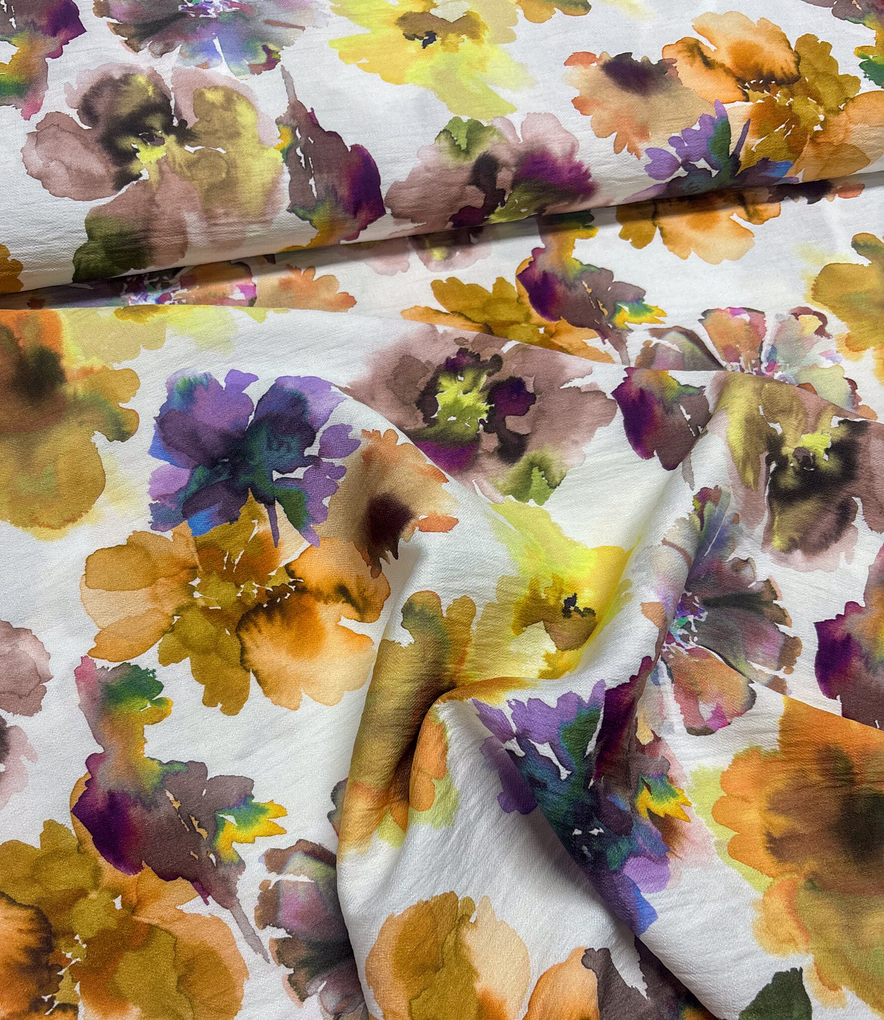 A beautiful viscose slub (lovely texture) with watercolor flowers. A la Ville fabrics.