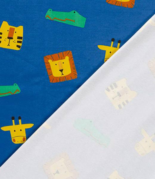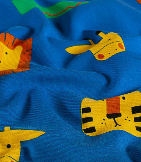A cool knit with animal heads. Perfect for a T-shirt, romper, summer dress, and more. Oeko-Tex Certified.
