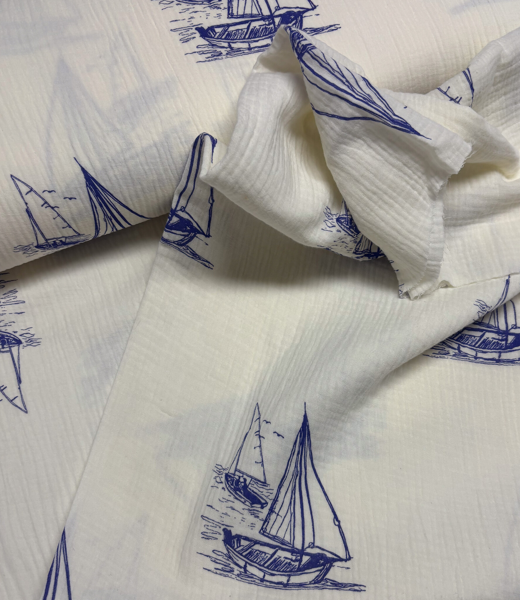 Beautiful quality double gauze with boat motifs. Perfect for dresses, tops, T-shirts, and baby and children's items (nests, blankets, etc.). Wonderfully soft. OEKO-Tex certified.