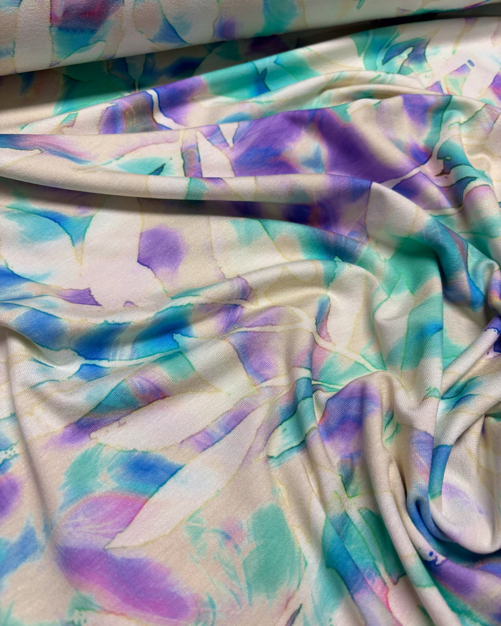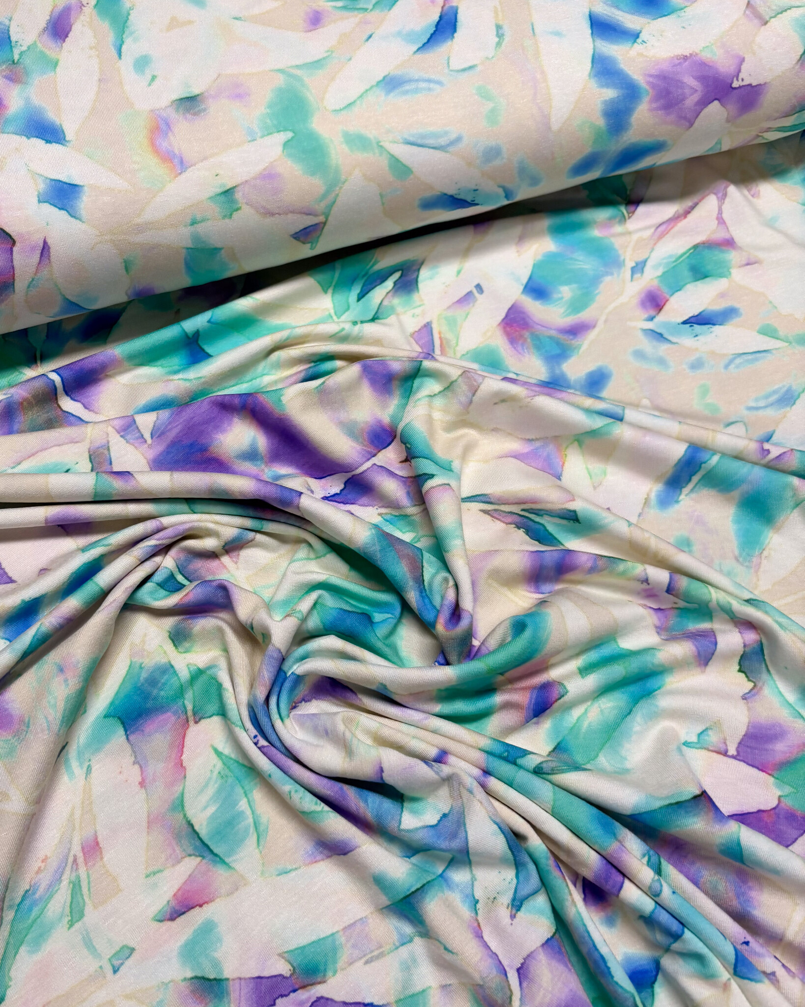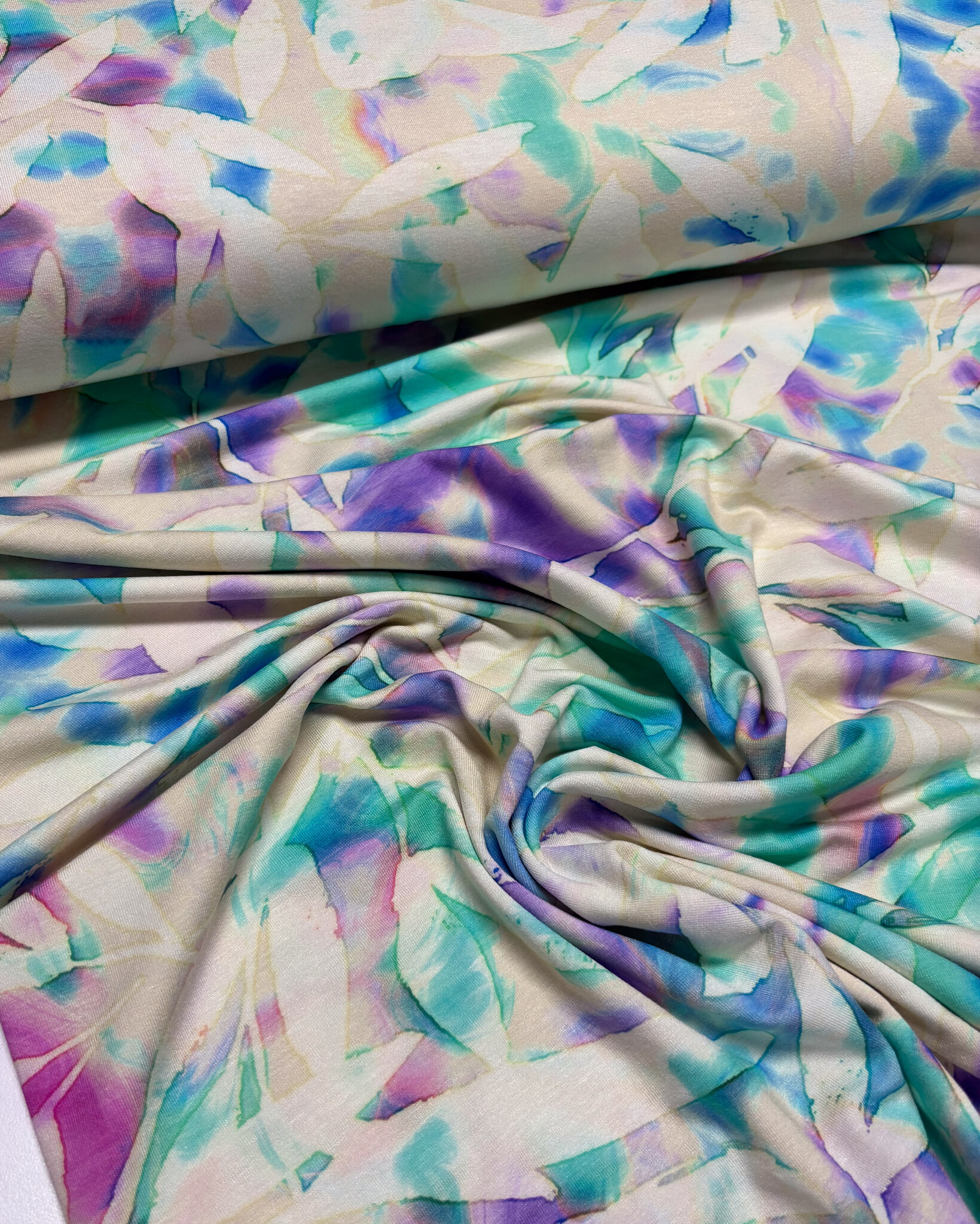 A fine viscose jersey with summer print. OEKO TEX. Soft and supple fabric, very suitable for T-shirts and sporty dresses for women.
