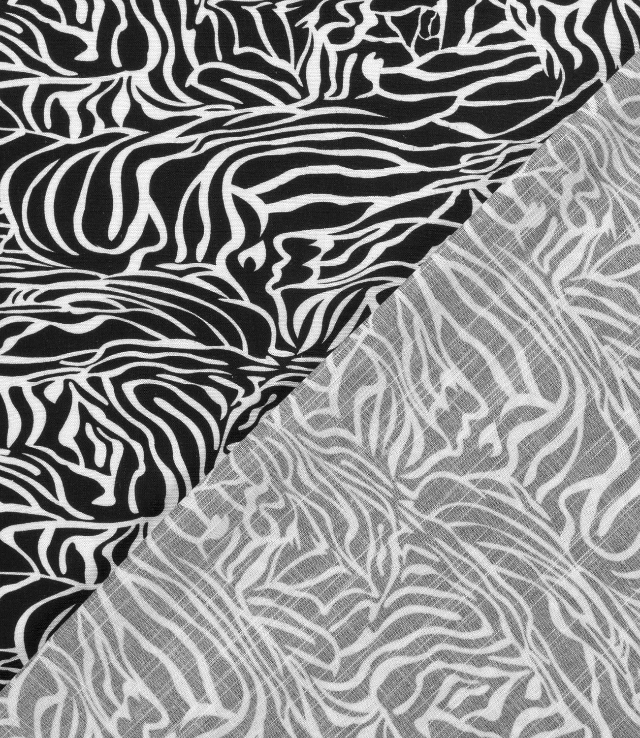 A linen viscose with a black and white print. OEKO-tex certified. Perfect for airy blouses, skirts, and dresses, ...