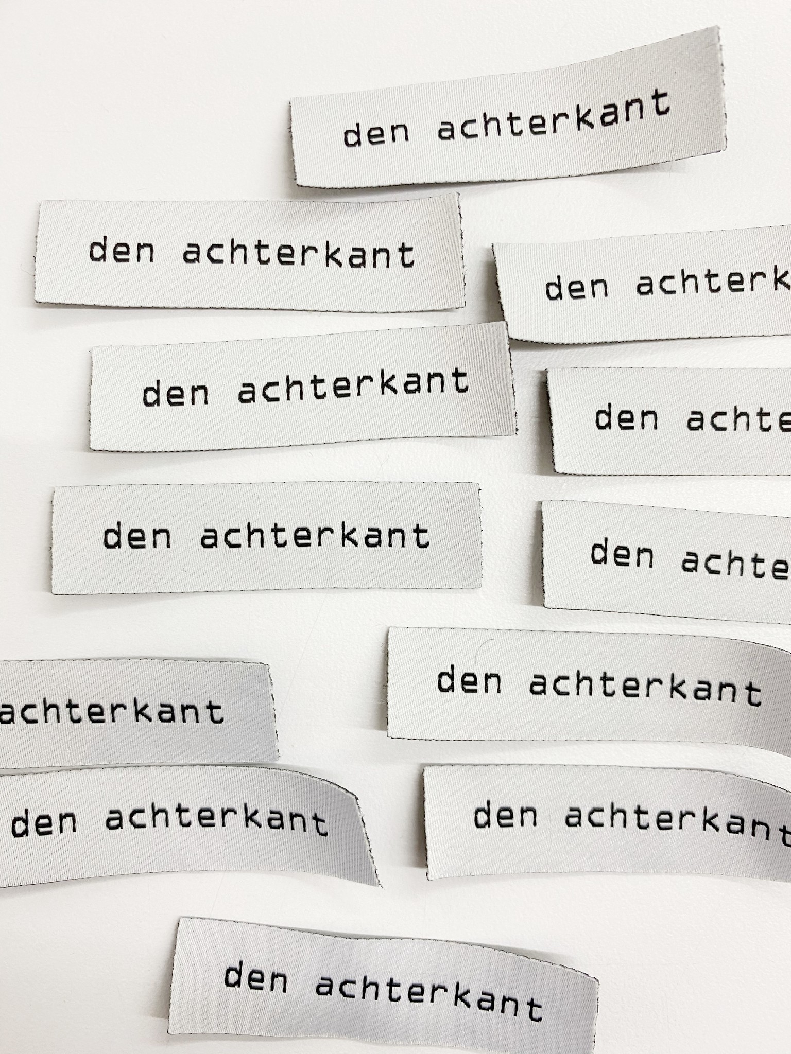 opdruk: "den achterkant" - Het is gedaan met kleding achterstevoren aan te doen! :-)