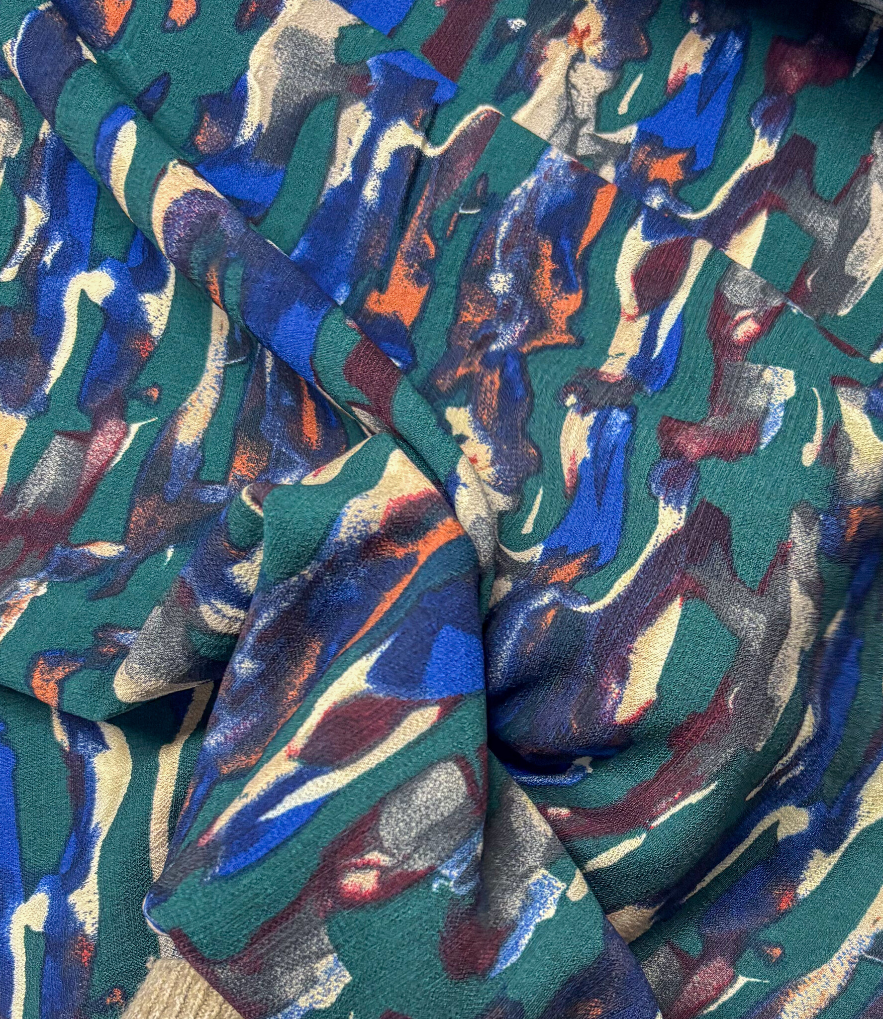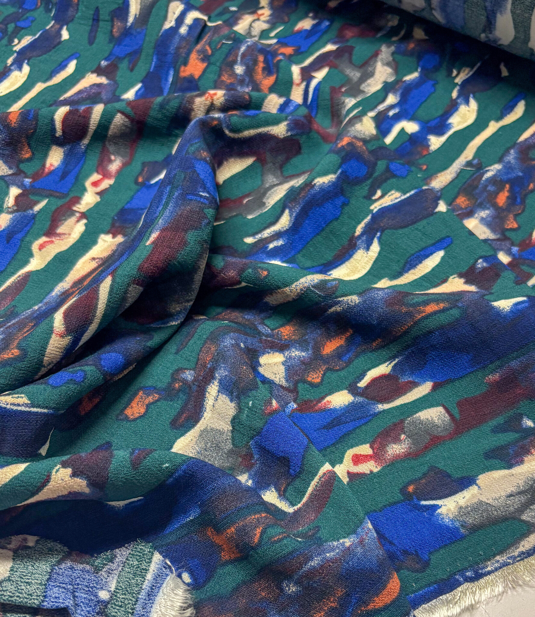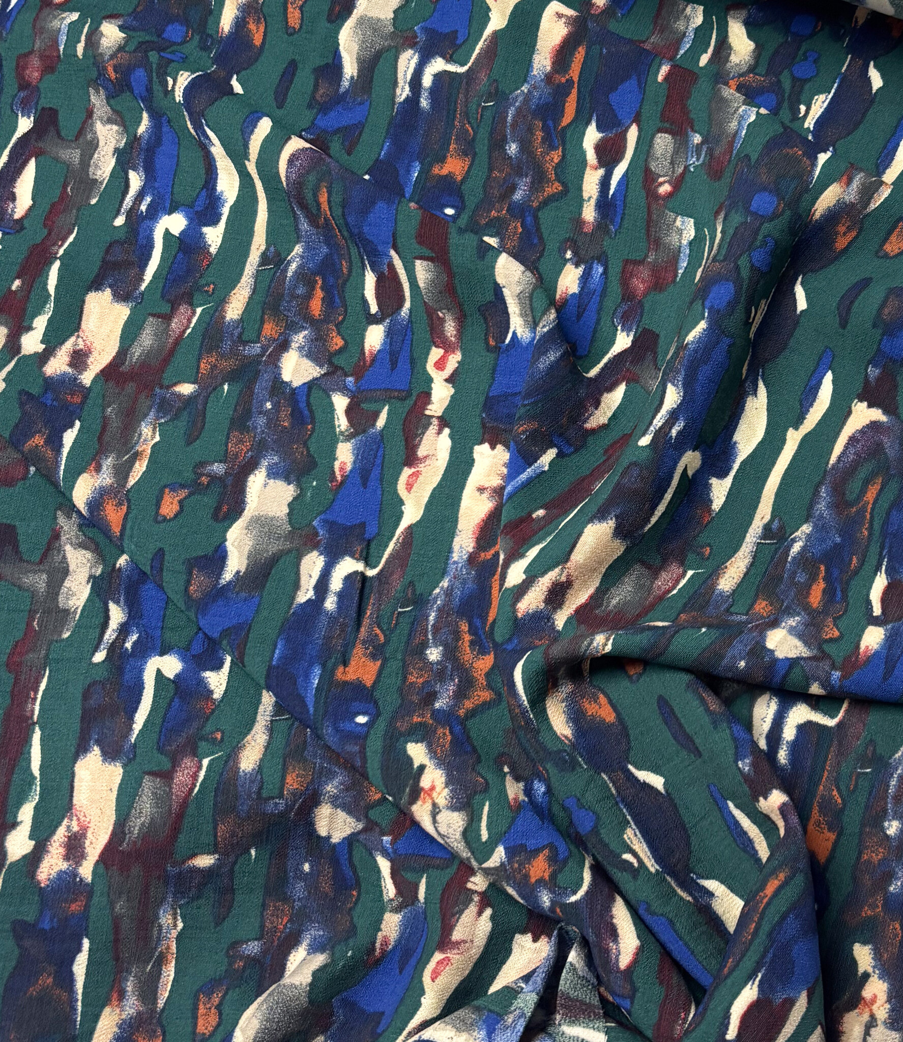 Mooie, kwalitatieve viscose met groene abstracte print.