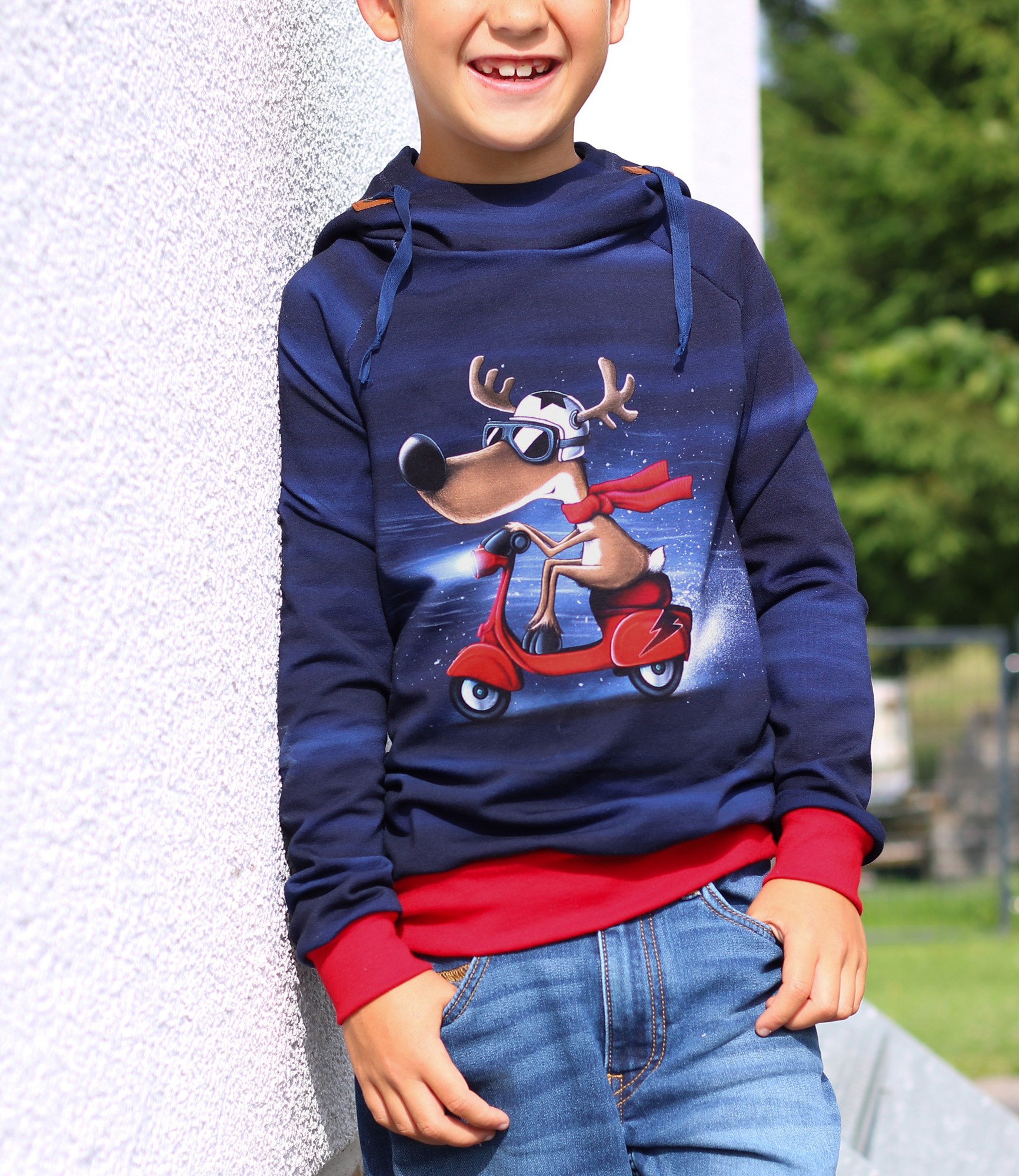 Mooie, kwalitatieve french terry sweater stof. Deze is passend bij de Rudolph op de scooter french terry. OEKO-TEX. Swafing stoffe.