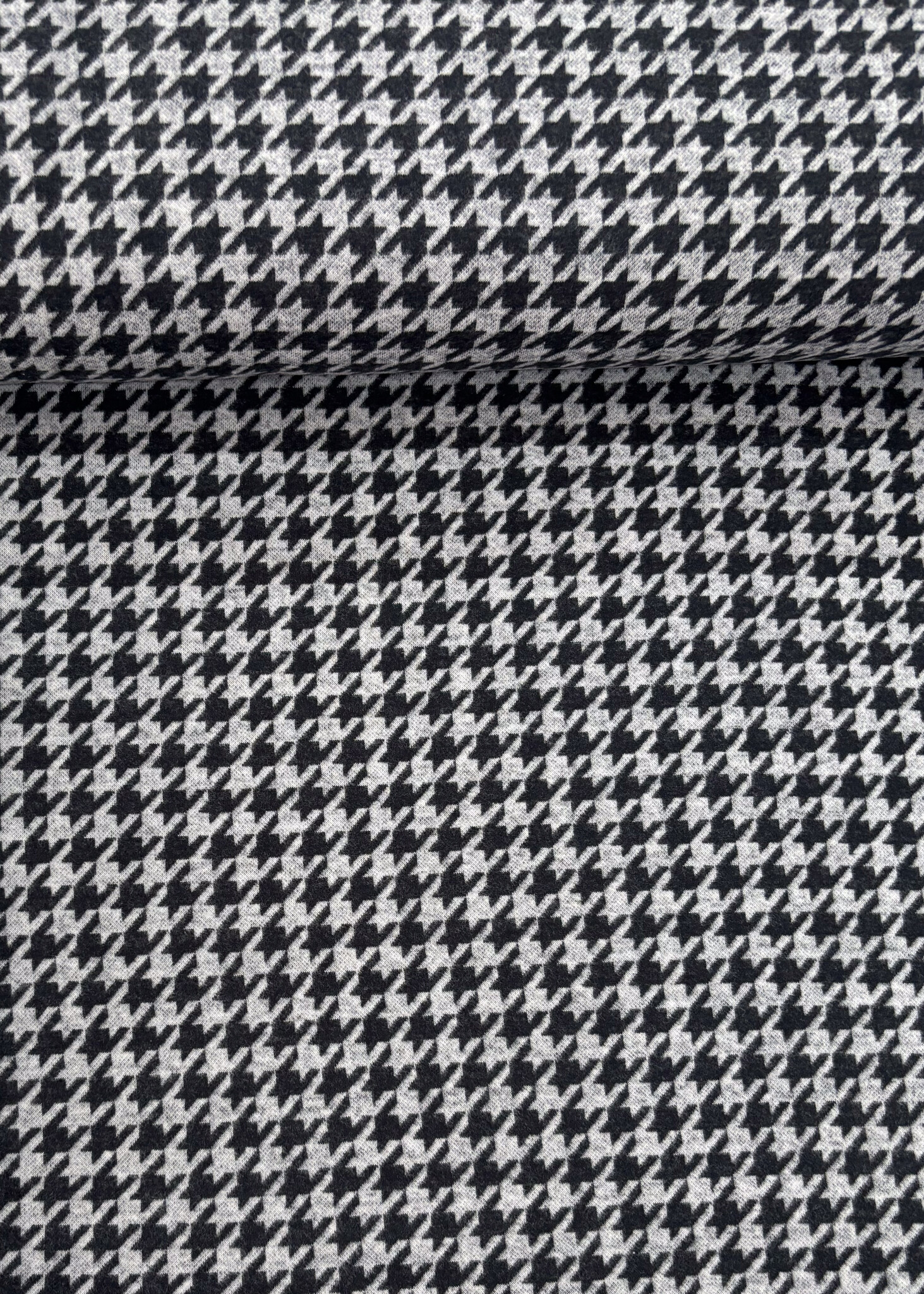 Een extra zachte structuur tricot met pied de poule motief. Door de weving rekt deze stof lichtjes mee.
