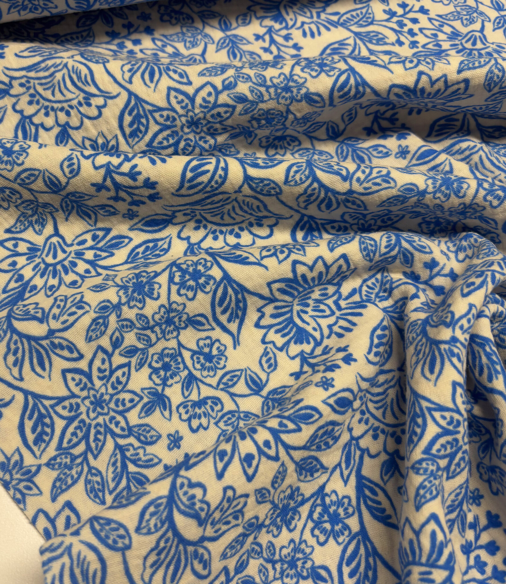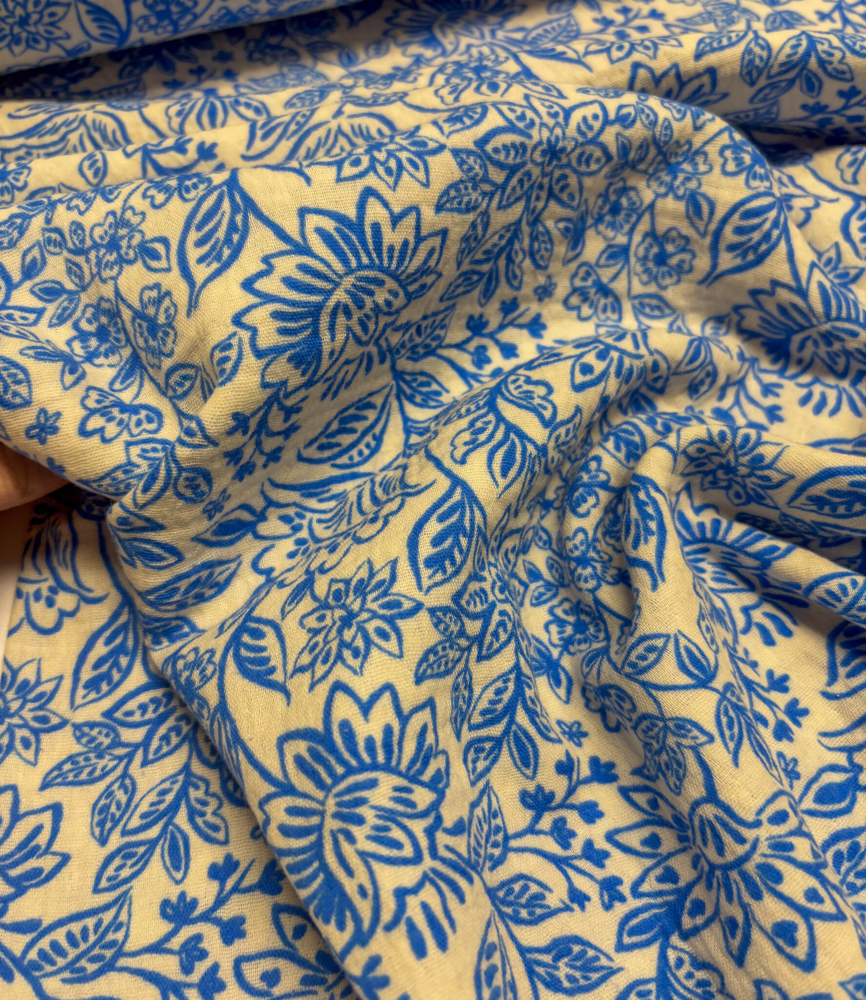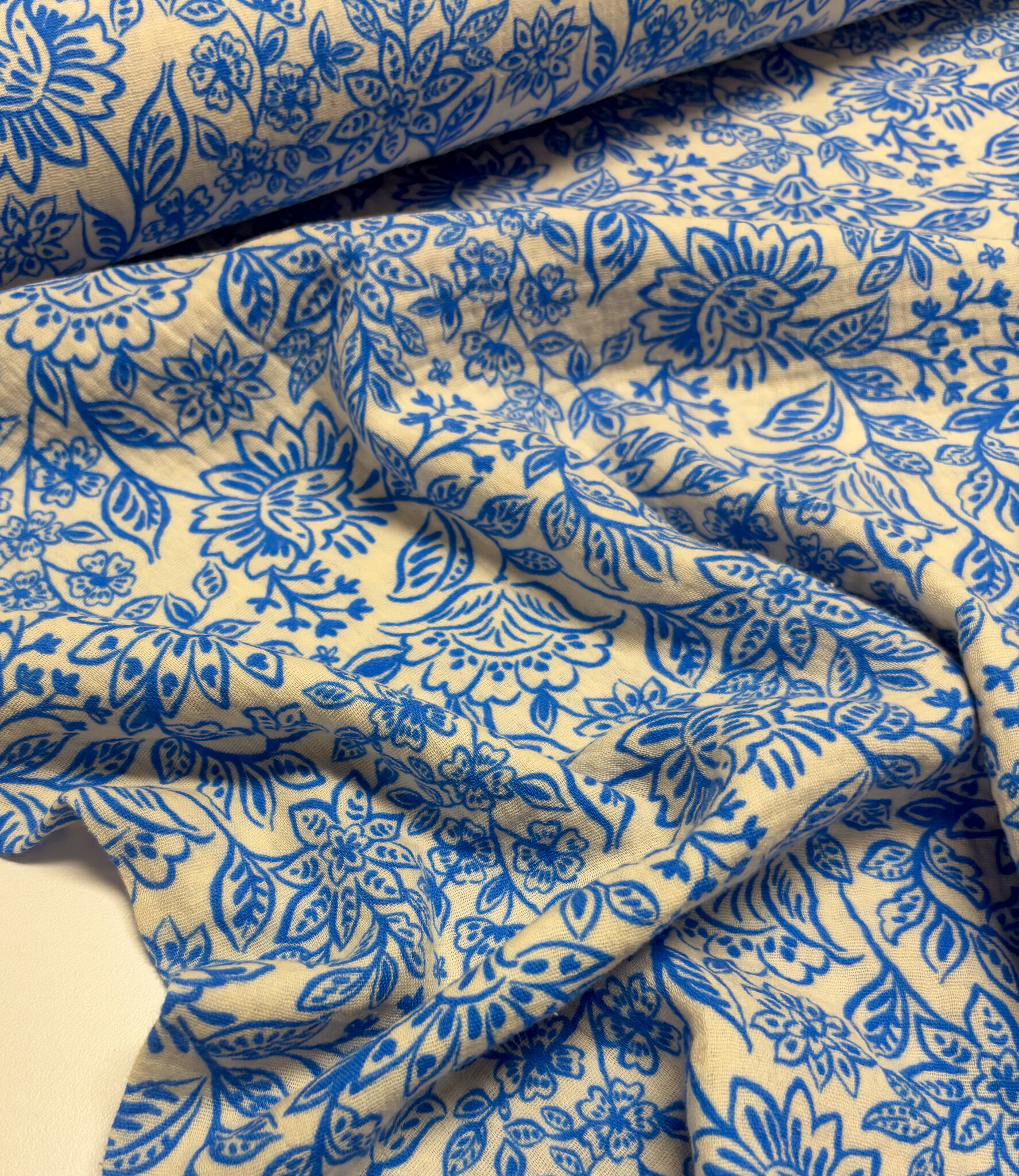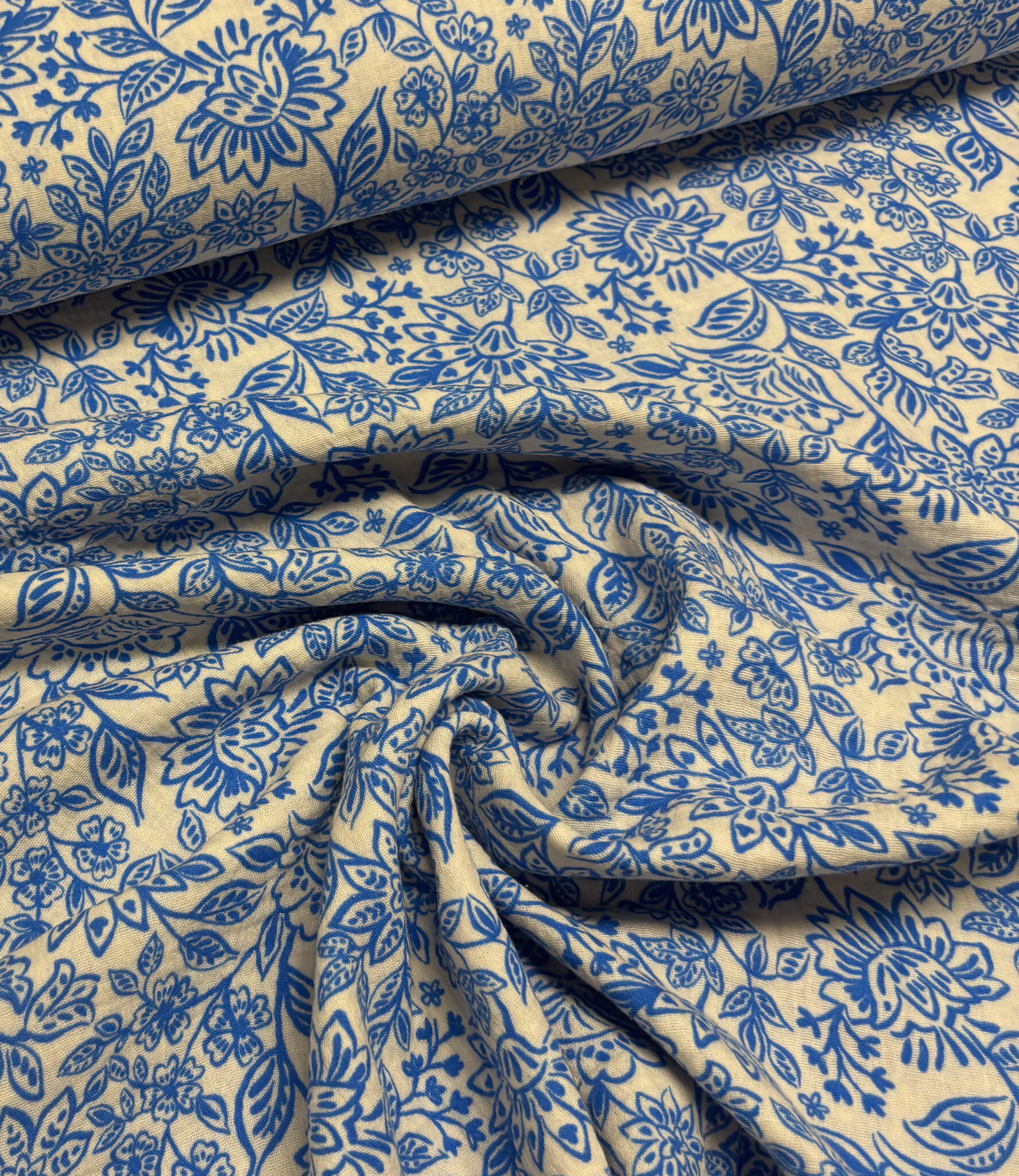 Mooie kwaliteit double gauze met bloemen. Perfect voor kleedjes, tops, T-shirts en voor baby- en kinderspulletjes (babynestje, dekentje, ...). Heerlijk zacht. OEKO-tex.
