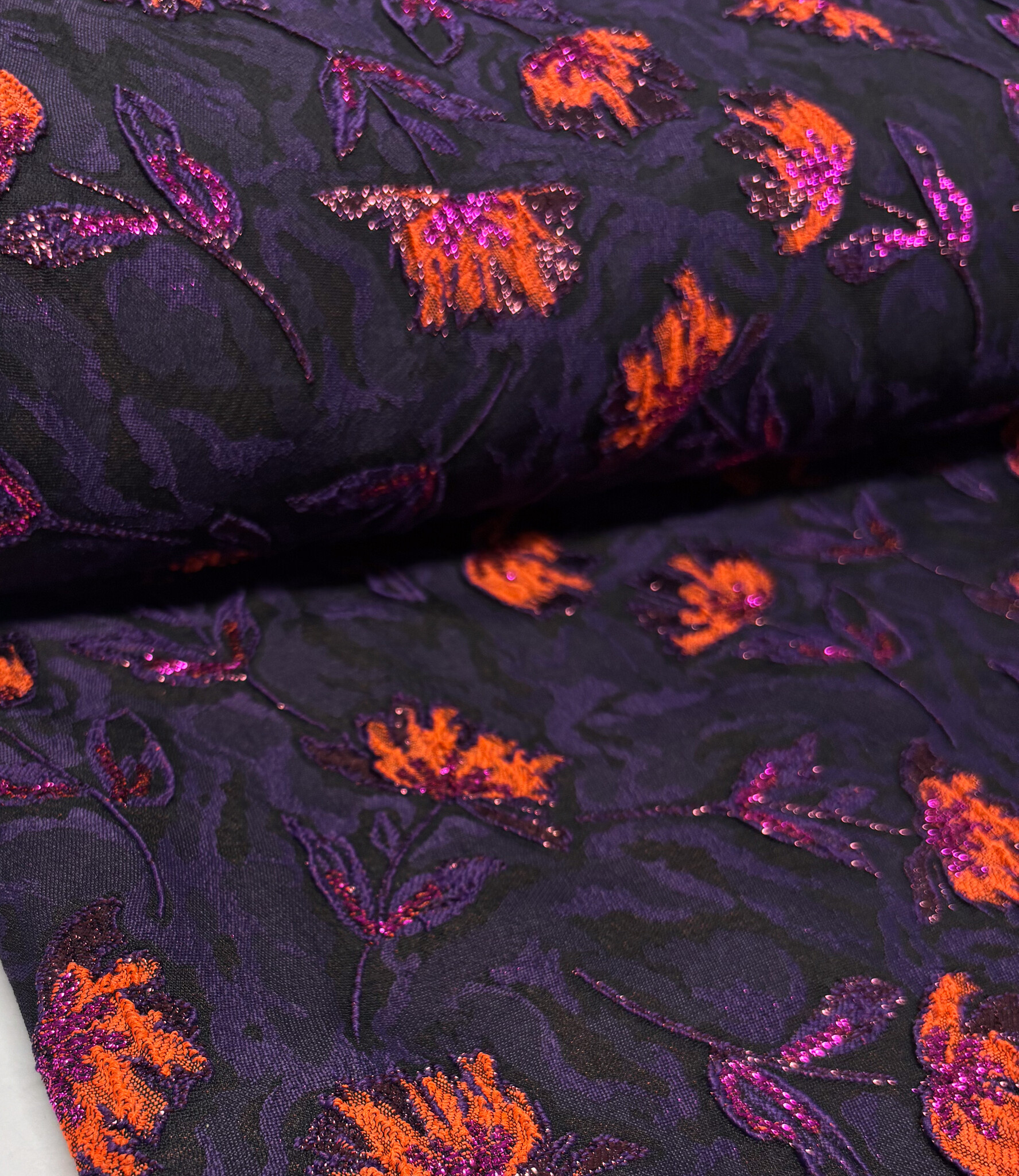 Een prachtige geweven jacquard met bloemen en lurex . A la Ville - Bittoun stoffen. Deze stof wordt gebruikt in de Knipmode. Dit is een soepele jacquard. Ideaal voor blouses, jurken, rokken en blazers. Maar zeker ook geschikt voor een losse broek. Of als detailmouw bij een sweater of blazer.