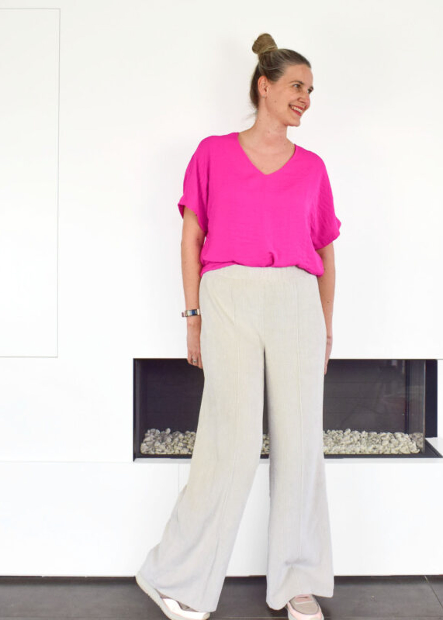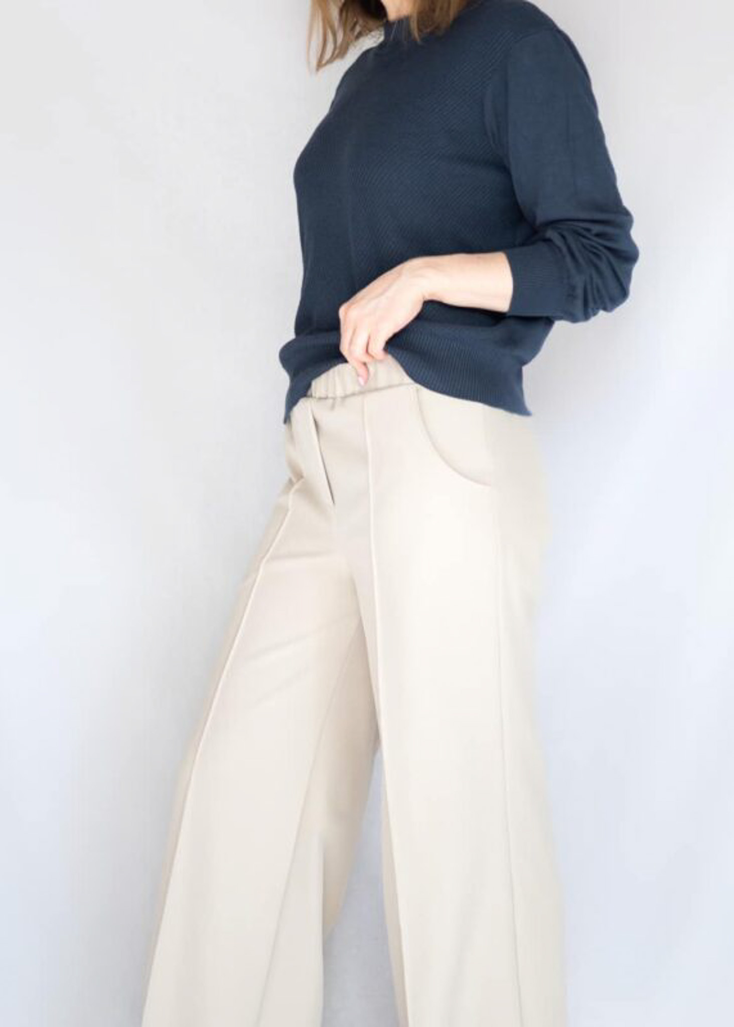 Bay is een comfortabele broek met wijde, losse pijpen.