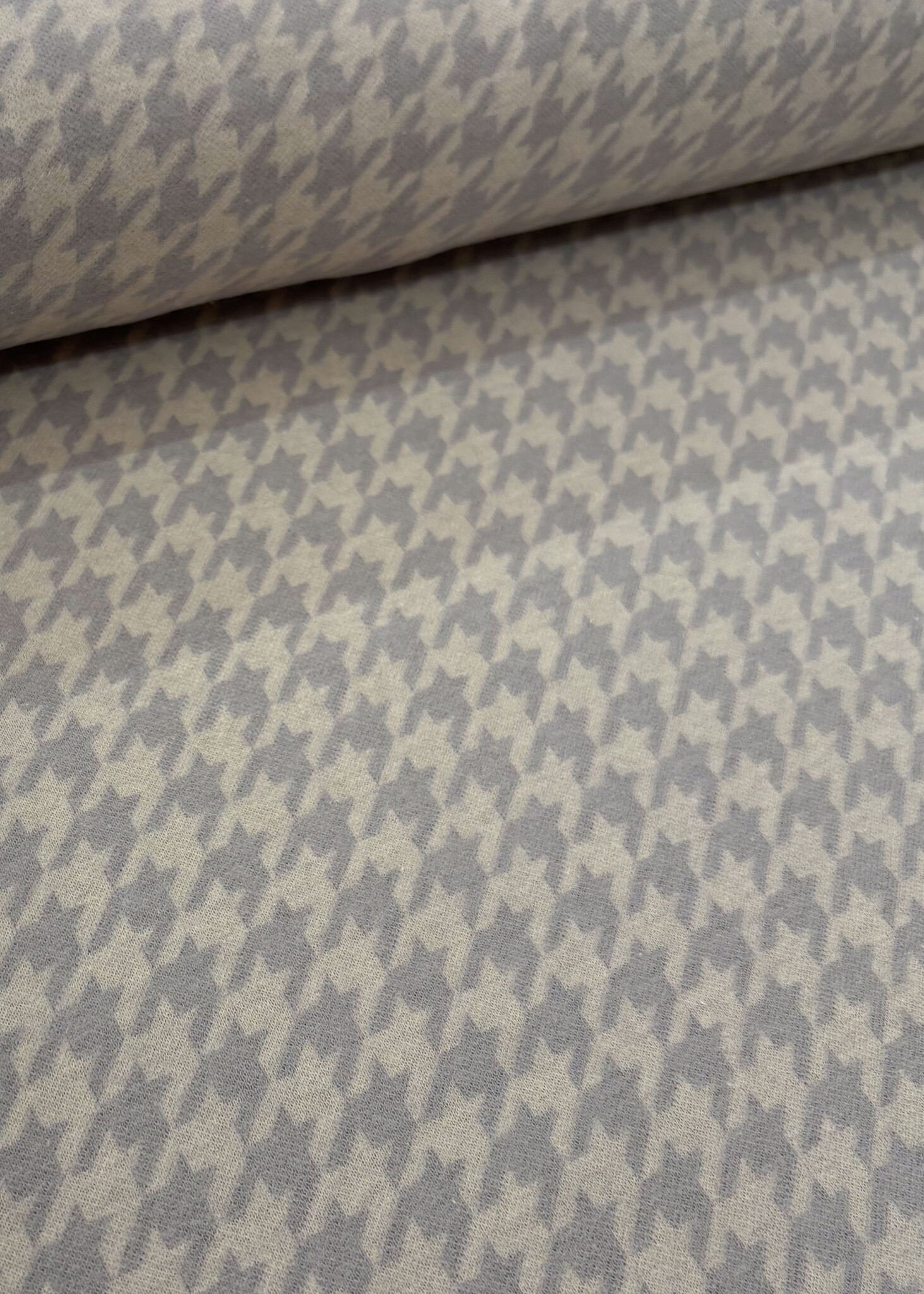 Een extra zachte structuur tricot met pied de poule motief. Door de weving rekt deze stof lichtjes mee.