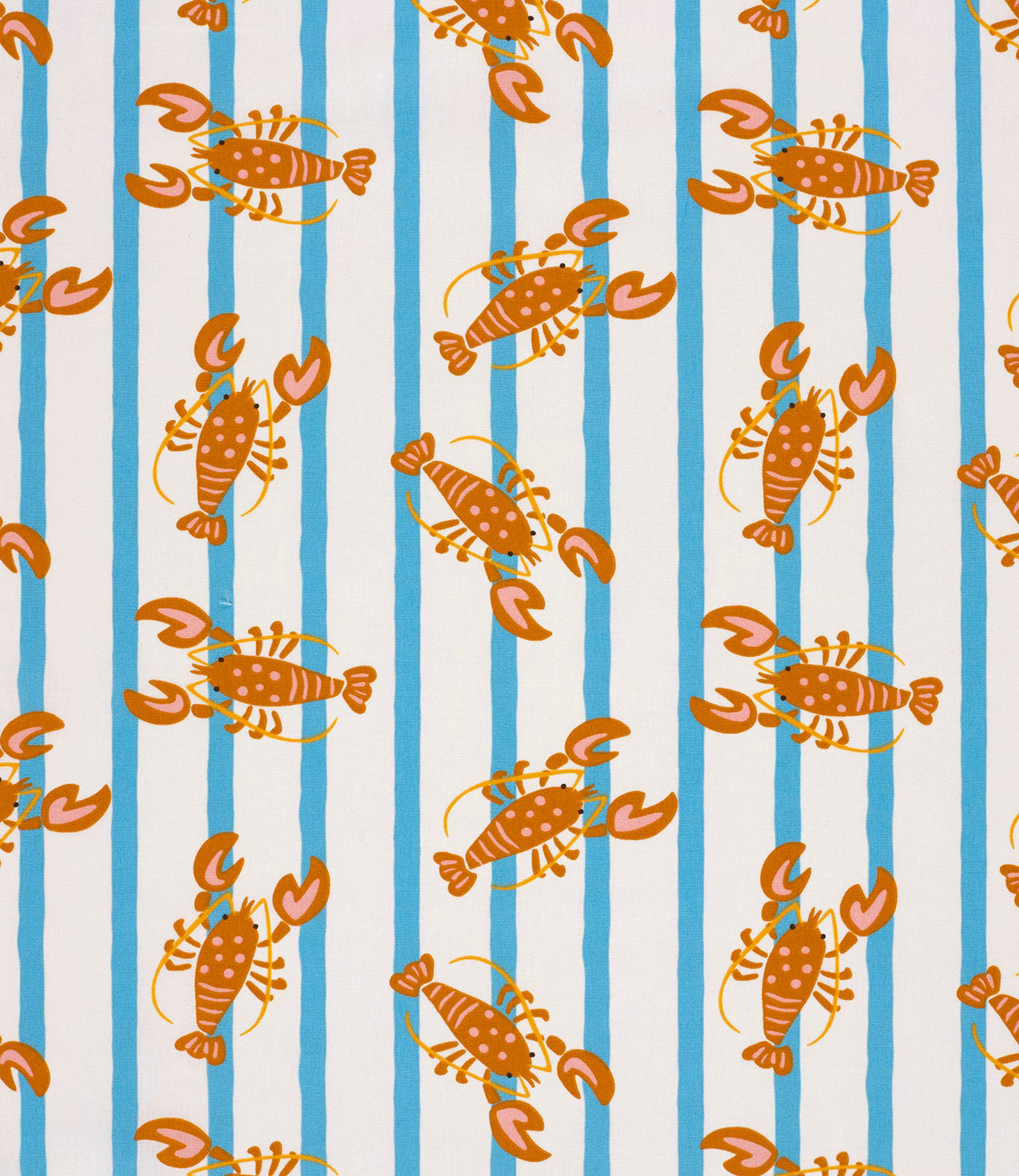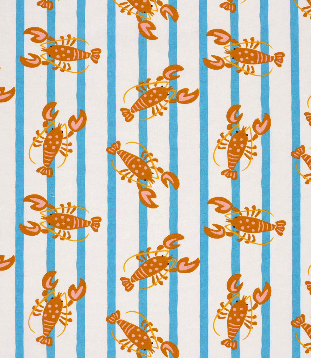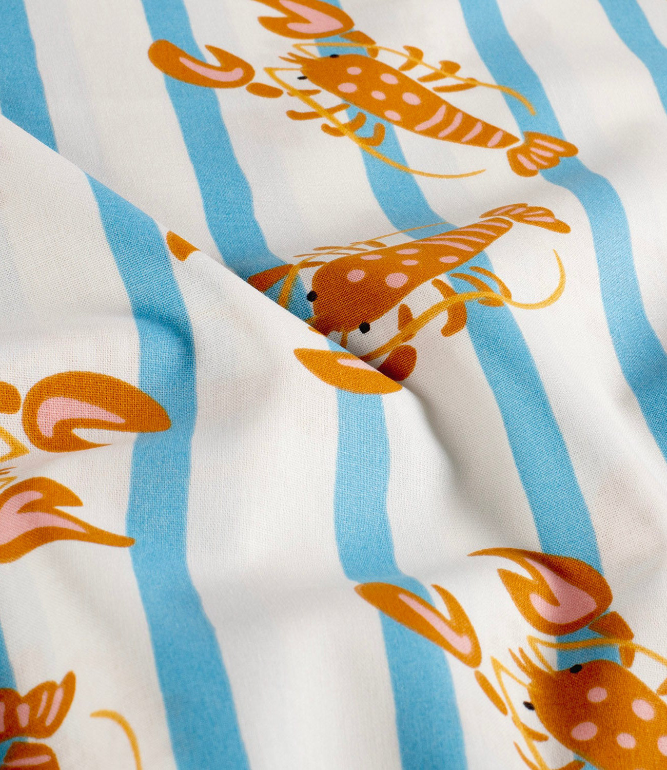Een prachtige katoen met strepen en kreeften.