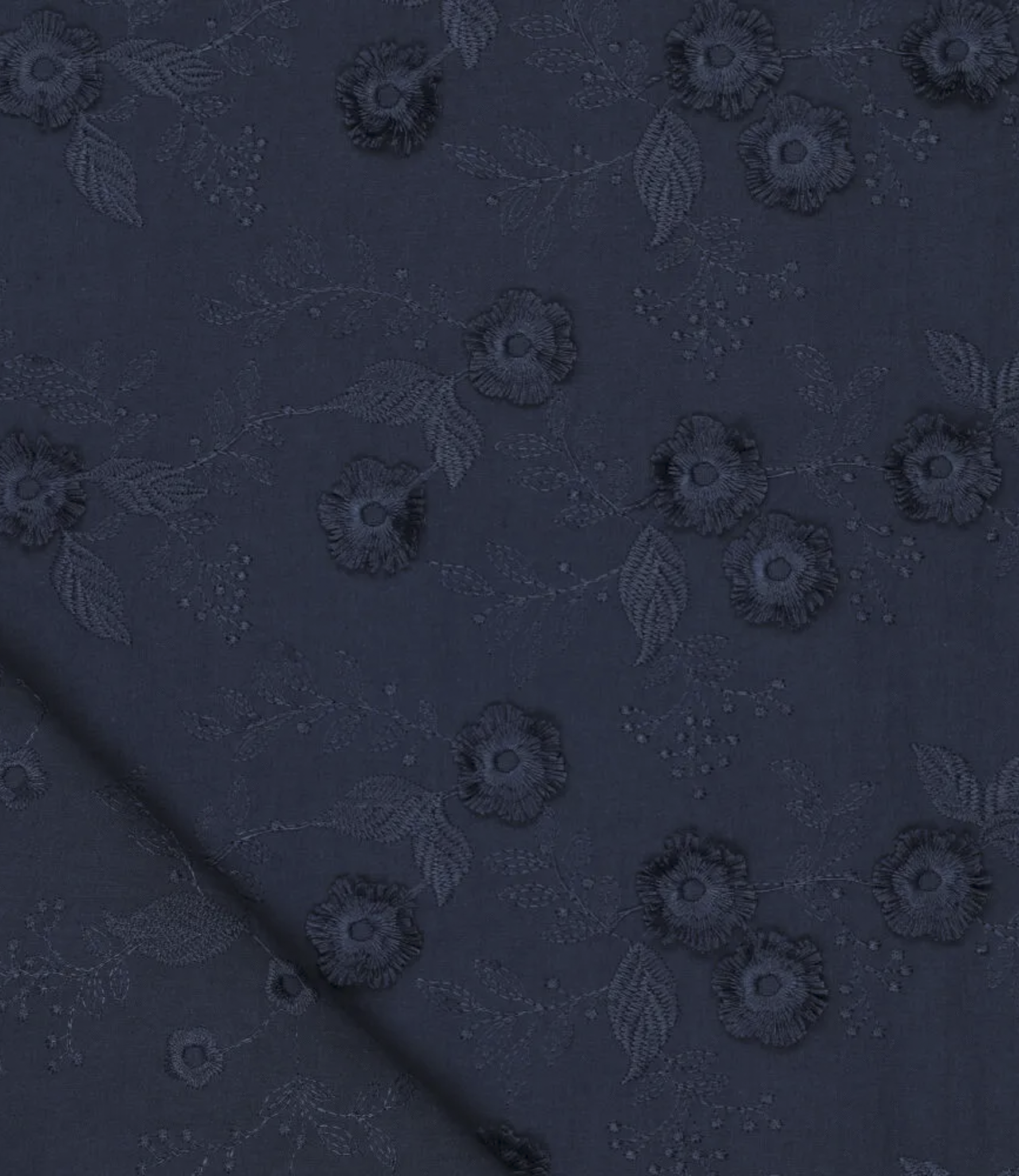 Een prachtige katoen met geborduurde bloemetjes. Perfect voor luchtige blouse, rok, ... OEKO-tex.