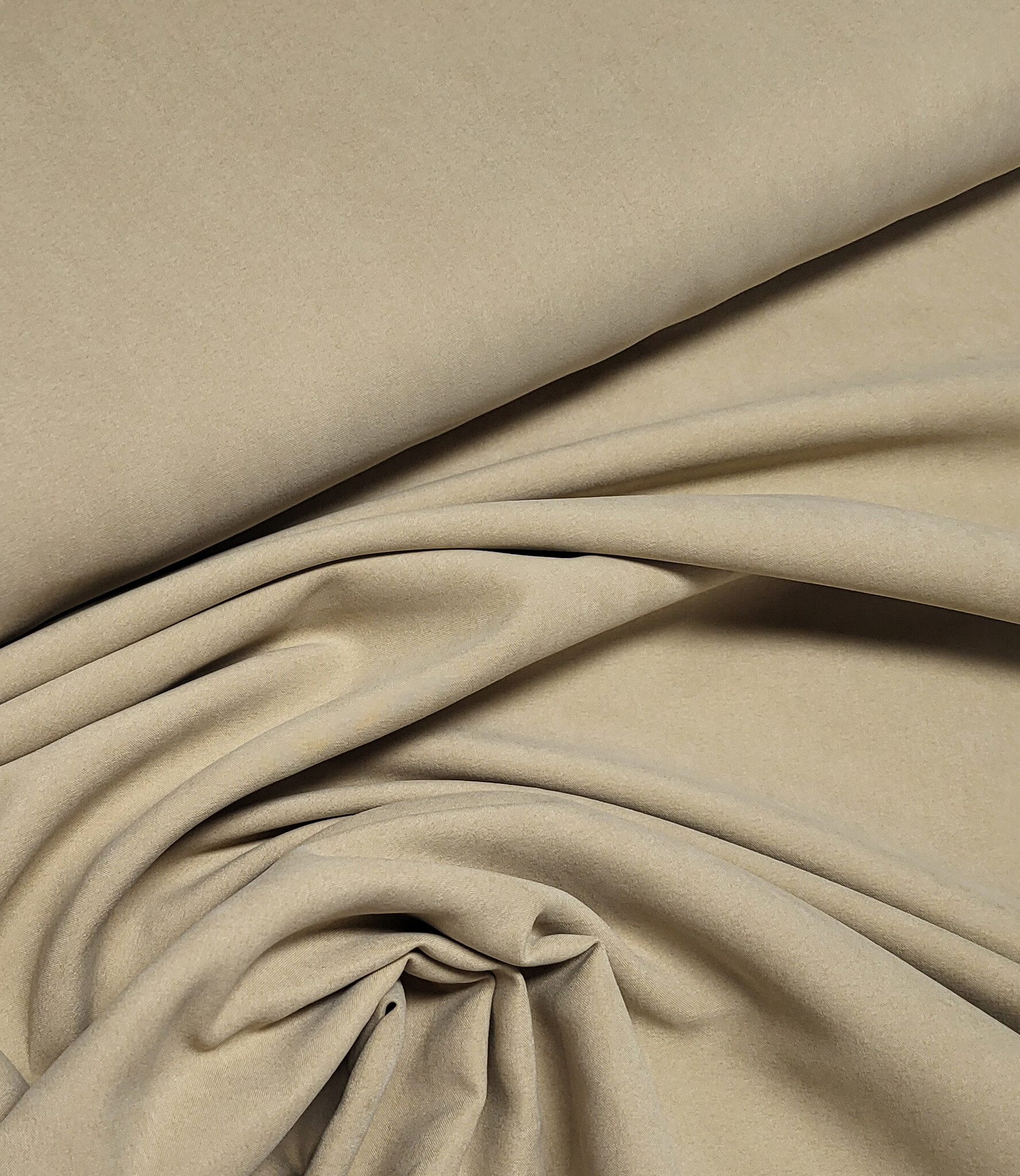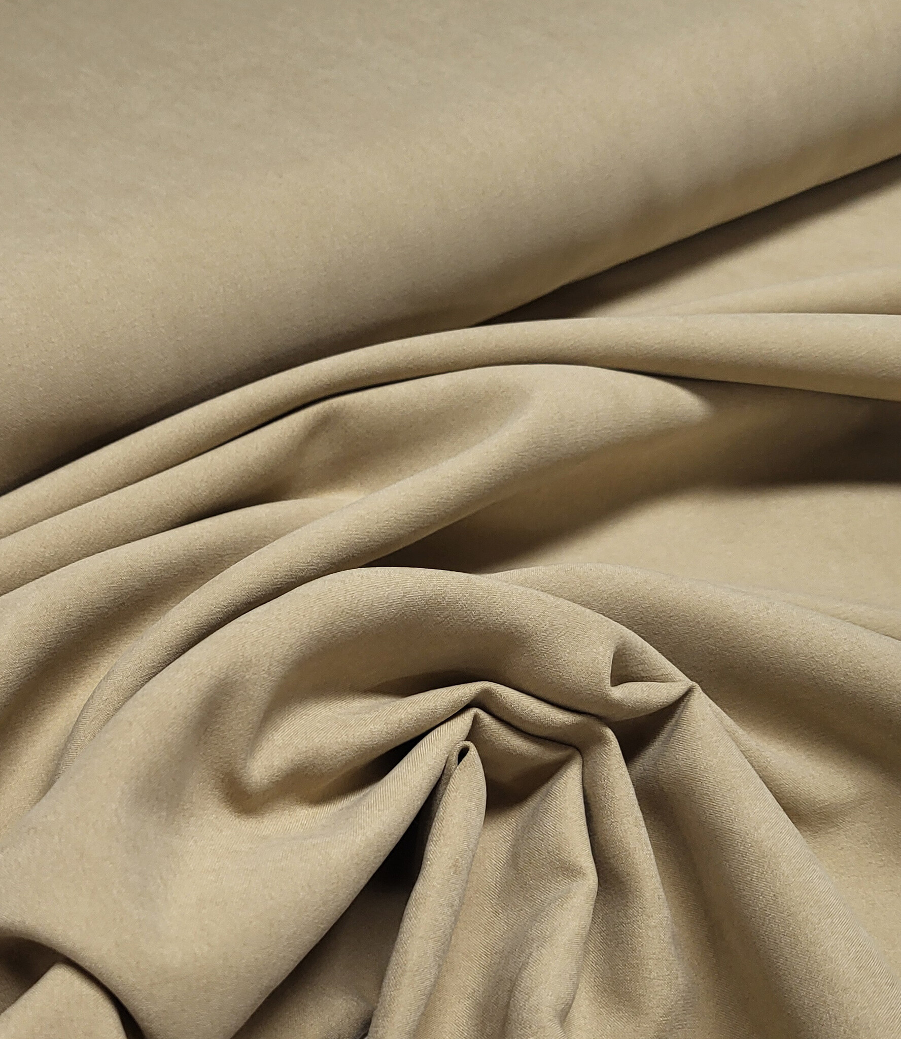 Een hele mooie, soepelvallende stof, met toch een leuk gewicht. De stof is waterafstotend. Deze stof is ideaal voor lichte trenchcoats en korte bomberjackets, zoals het Astrid jacket uit Fibre Mood 37. De stof valt heel mooi voor dit soort 'bloezende' jasjes. De stof heeft een matte finish: peach touch.