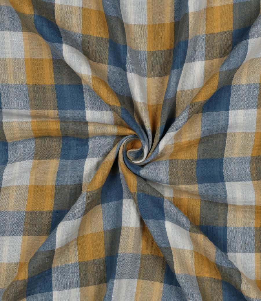 Een zachte tetra stof met ruitjes aan de buitenkant en streepjes aan de binnenkant. Perfect voor jurken en bloesjes. Zowel voor kinderen als volwassenen. Heerlijk zacht en luchtig!