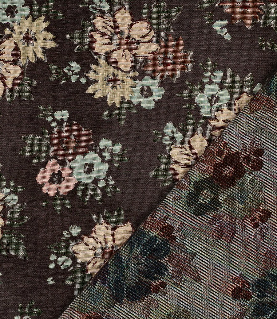 Een stevige gobelin jacquard met bloemen en subtiele lurex. Perfect voor tassen, maar ook voor rokken of vestjes.
