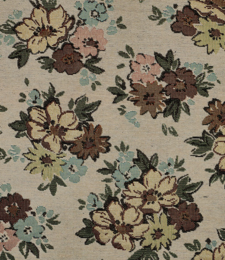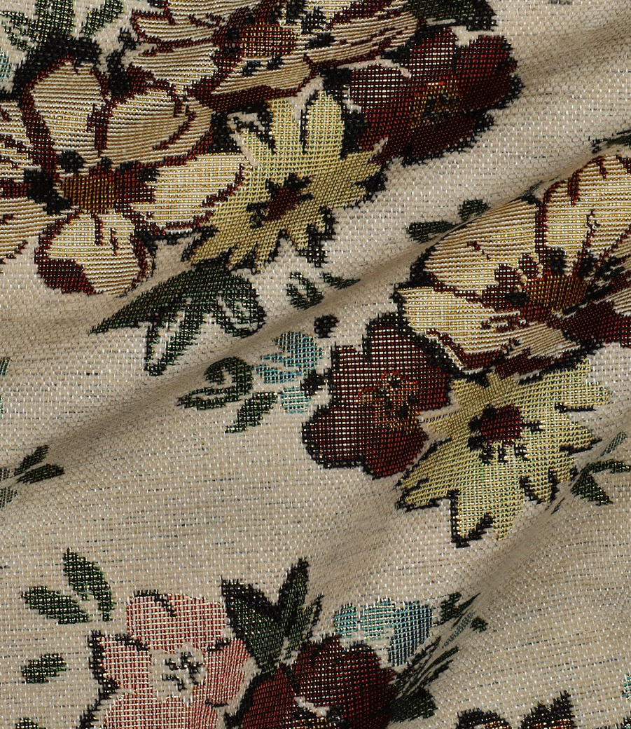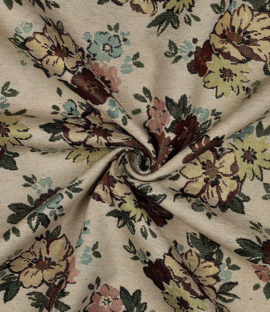 Een stevige gobelin jacquard met bloemen en subtiele lurex. Perfect voor tassen, maar ook voor rokken of vestjes.
