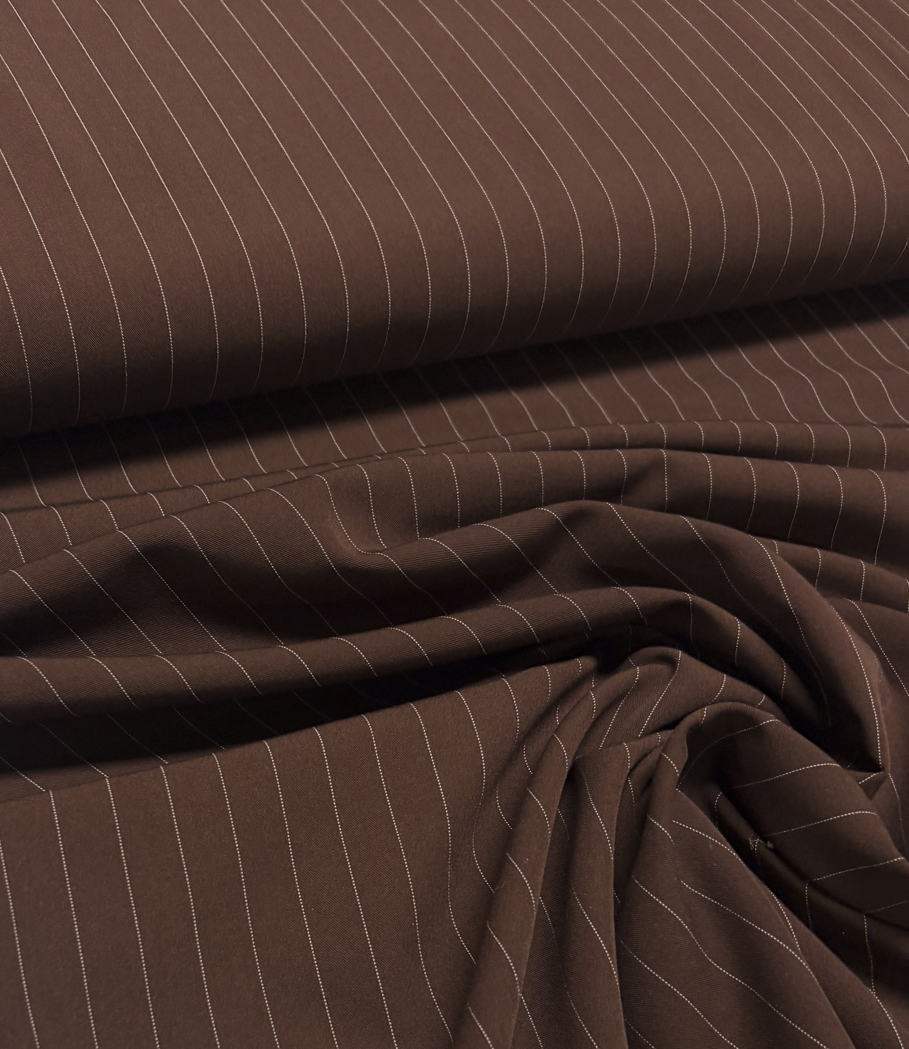 chocoladebruin pin stripe - soepelvallende (broeken) stof - Madeline de stoffenmadam - Stoffenwinkel Lier ( Antwerpen )