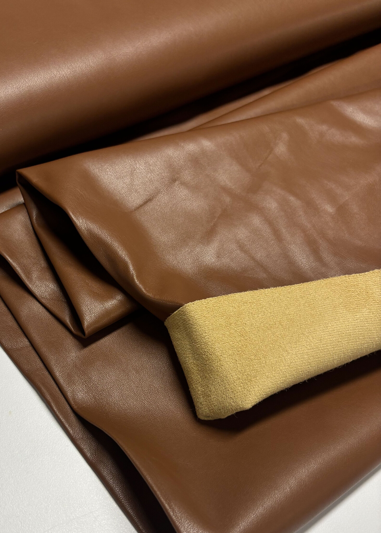 Zacht, soepel leer met een klein beetje stretch. Een zachte binnenkant. Ideaal voor kleding: rokken, jurken, broeken. Gebruikt in FibreMood voor de Tilda jurk.