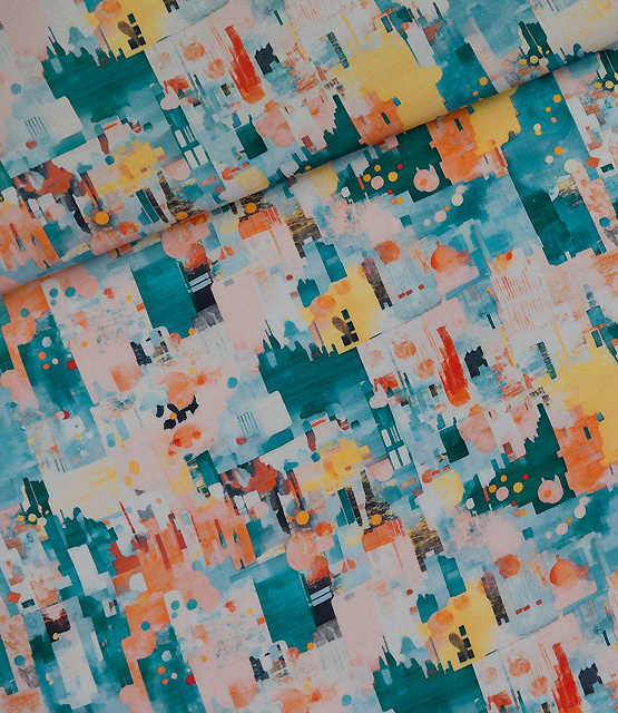 Verschillende pastelkleuren: beige, geel, oranje, turquoise (Je kan Gütermann kleur 802 gebruiken)