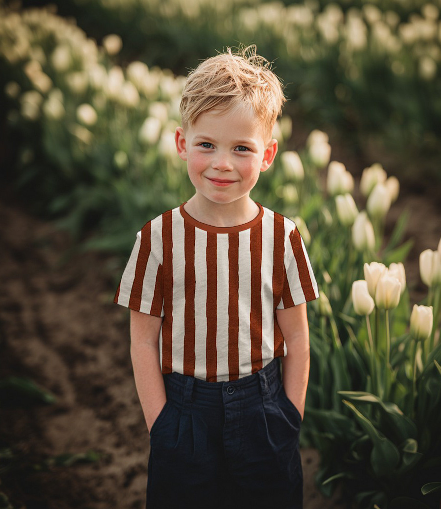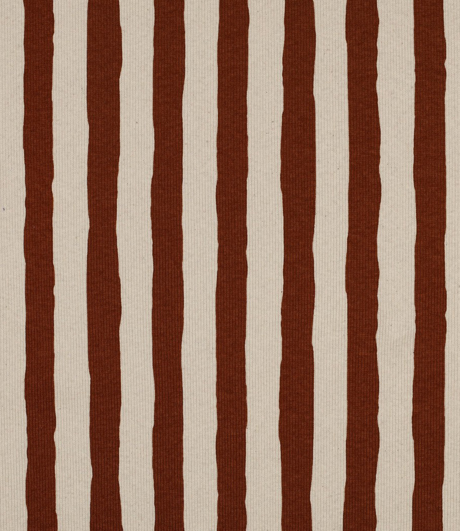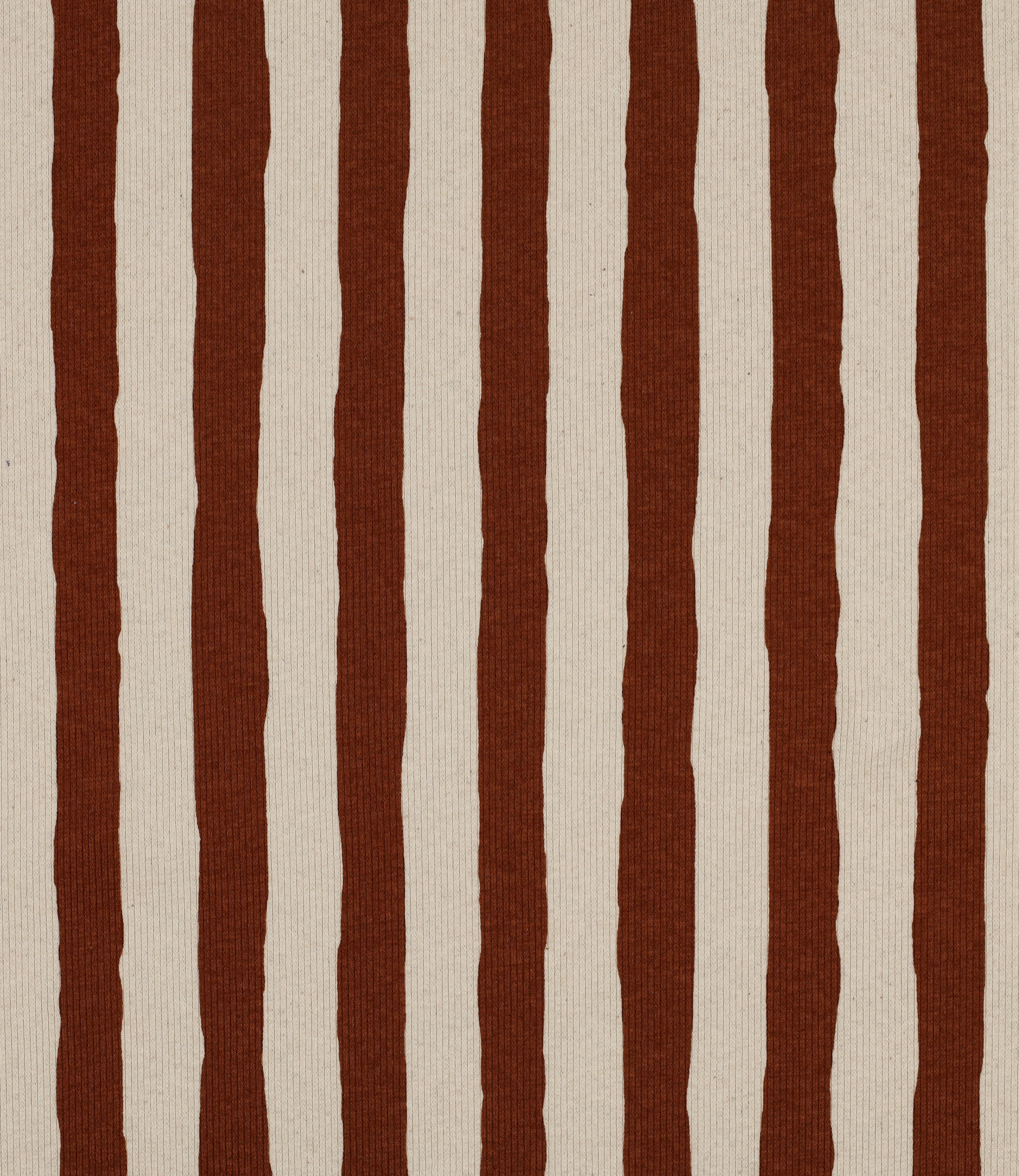 Een geribbelde tricot met streepjes op een ecru ondergrond. Supertof voor kinder- en babykleding. OEKO-tex