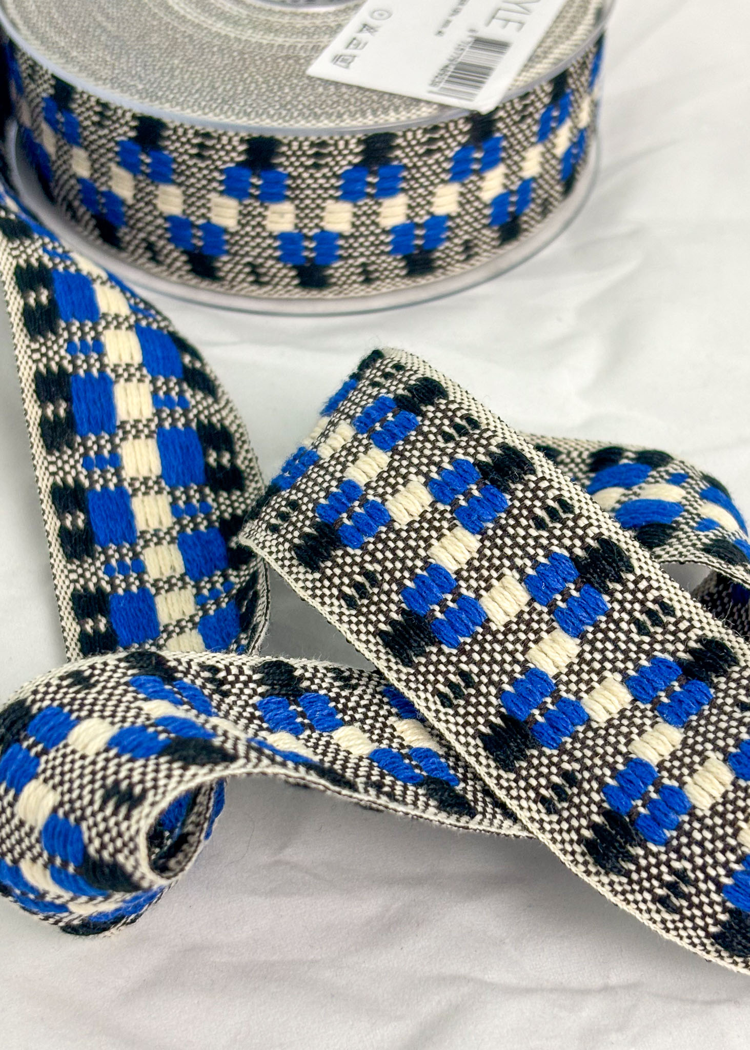 colorfull tassenband blauw en zwart - 40 mm - Madeline de stoffenmadam - Stoffenwinkel Lier ( Antwerpen )