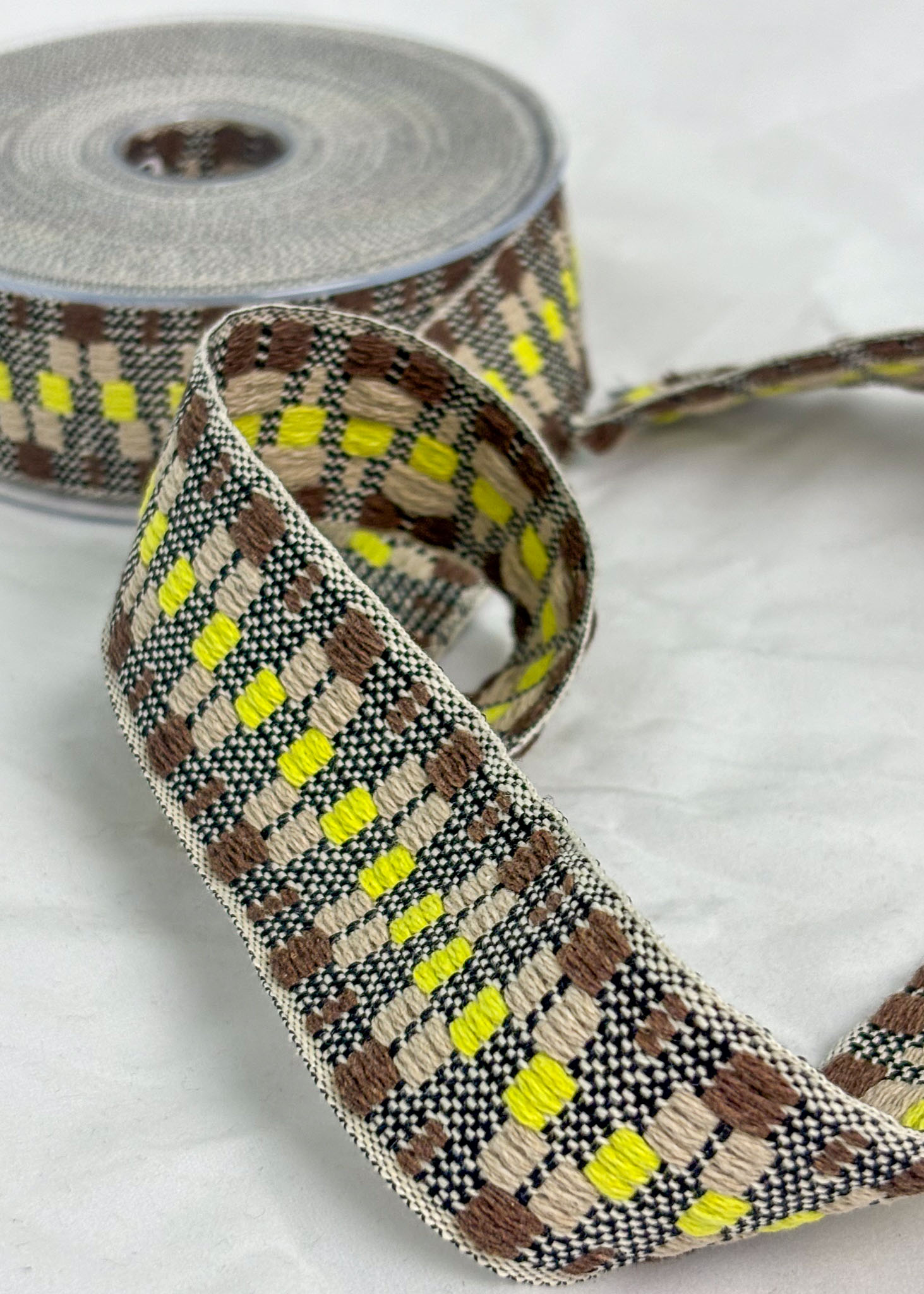 colorfull tassenband mokka en geel - 40 mm - Madeline de stoffenmadam - Stoffenwinkel Lier ( Antwerpen )