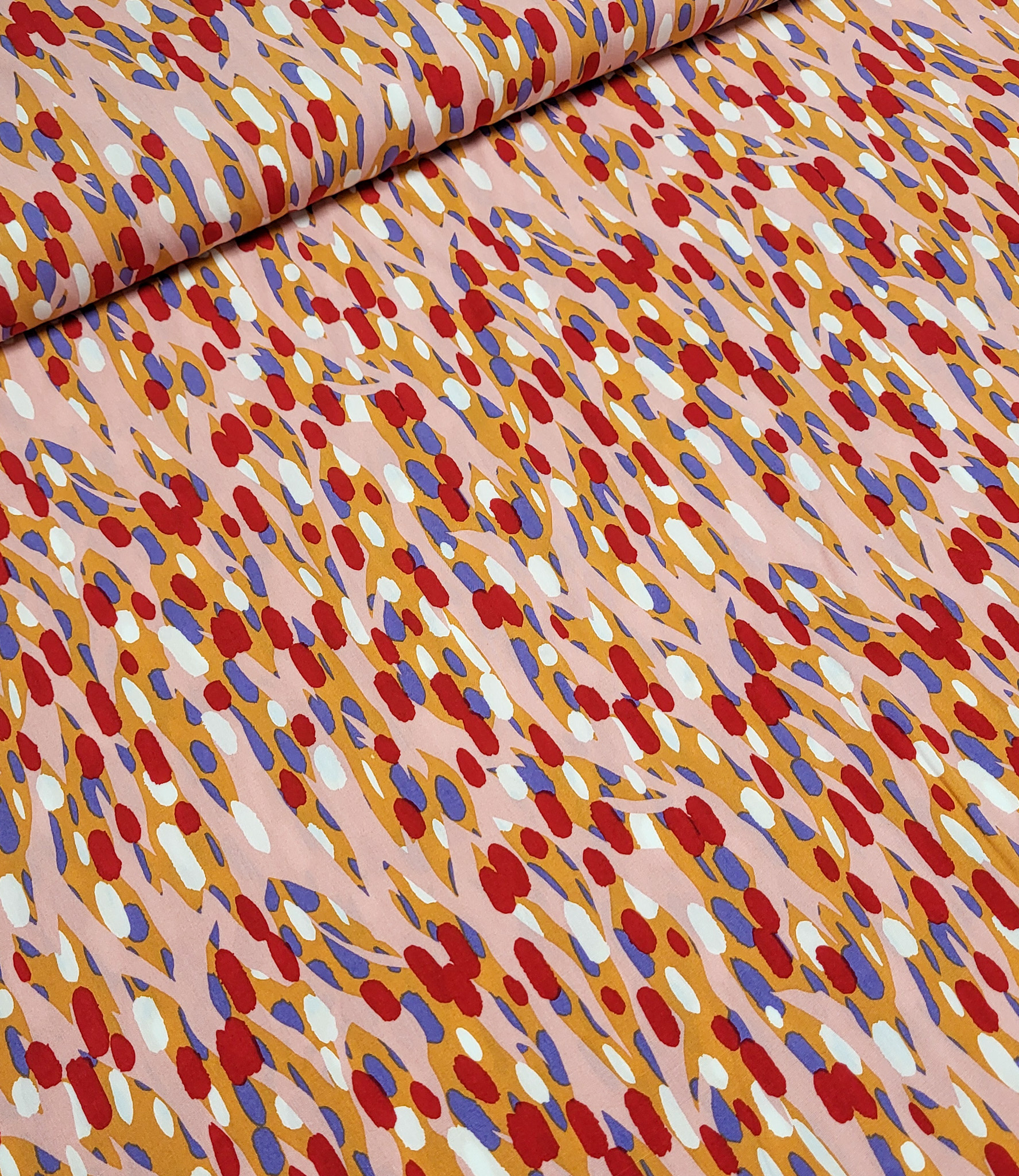 Hele mooie kwaliteit viscose. Deze soepelvallende stof valt mooi soepel, schijnt niet door en is perfect voor rokken, kleedjes, blouses en broeken.