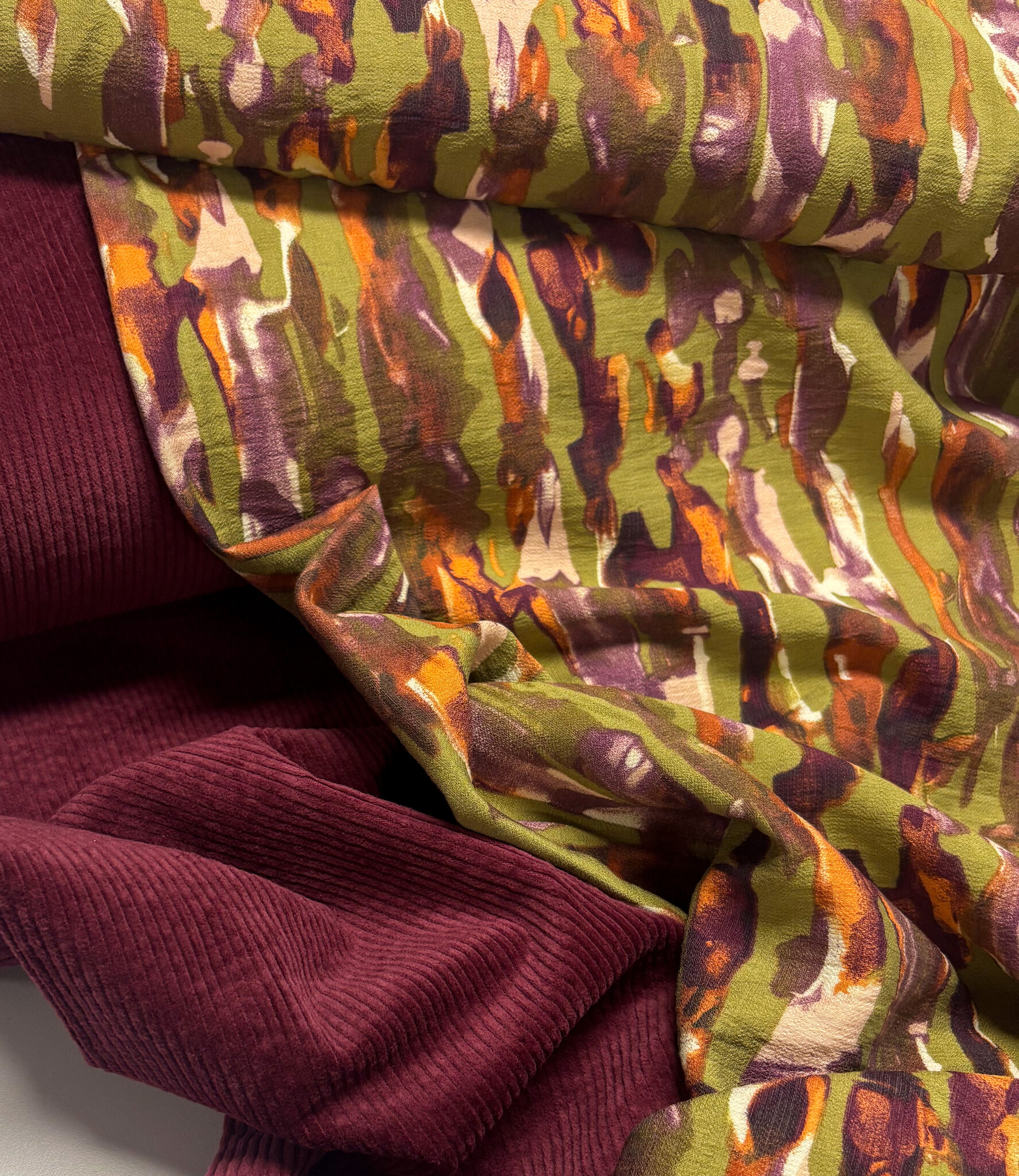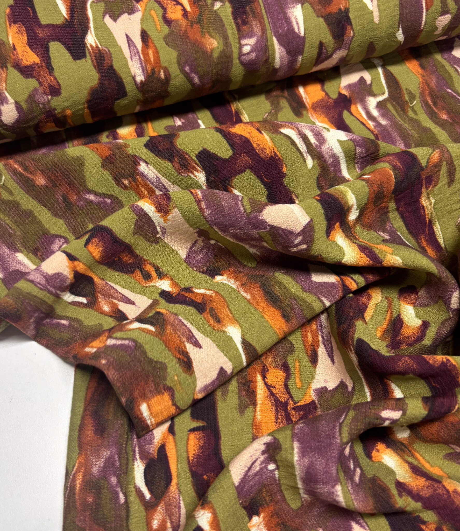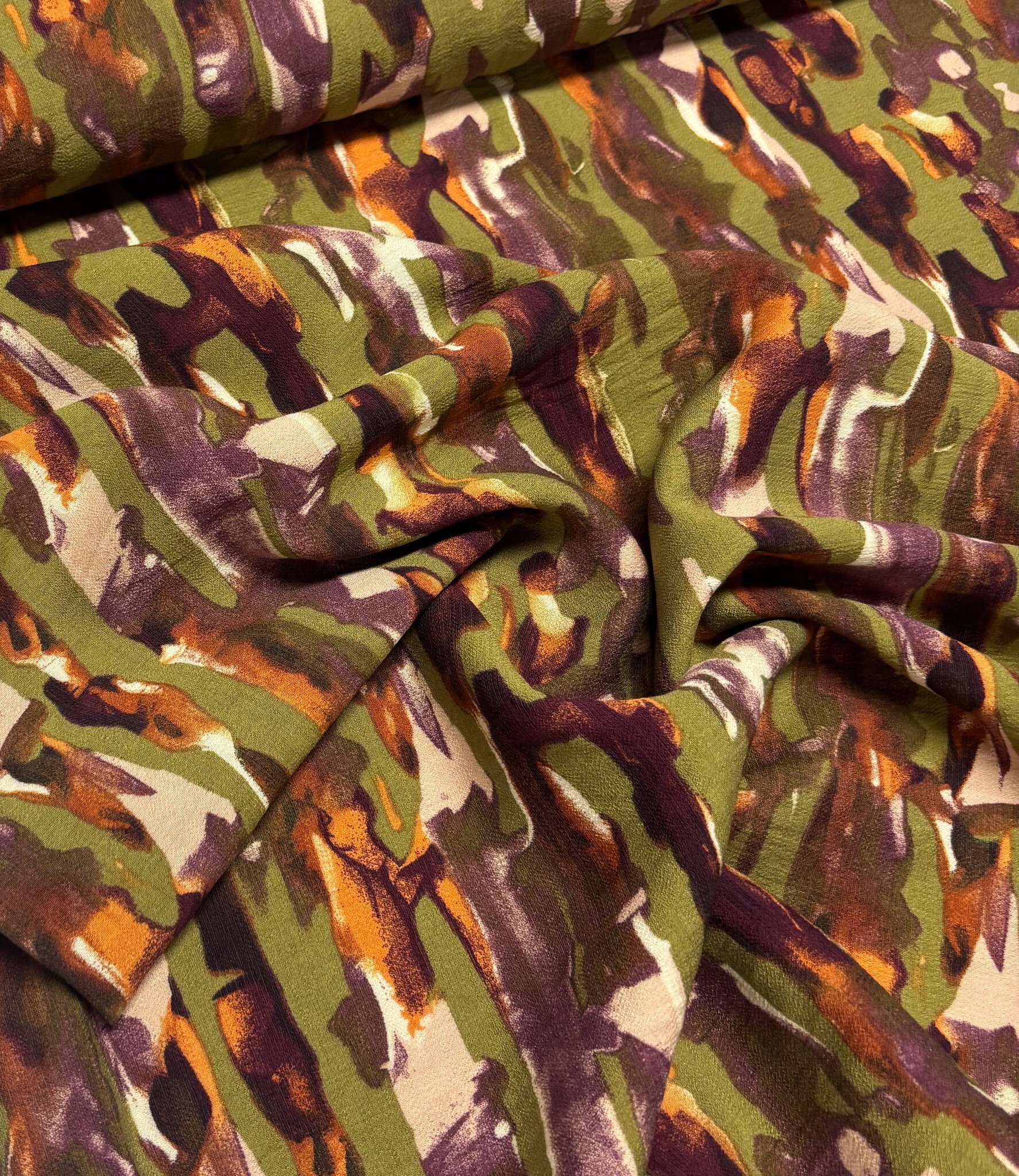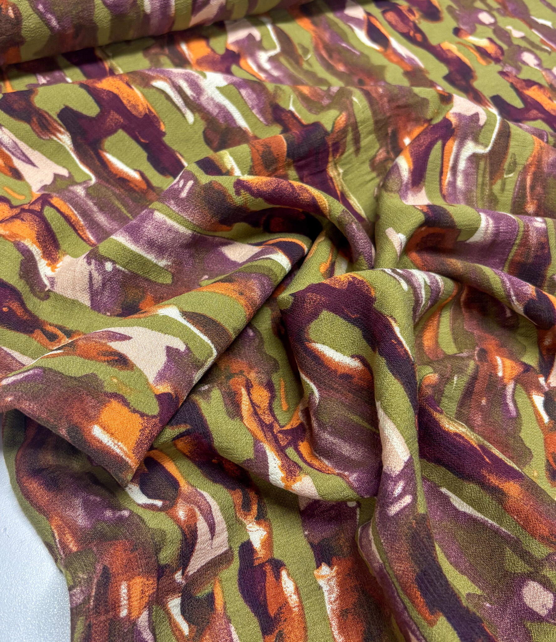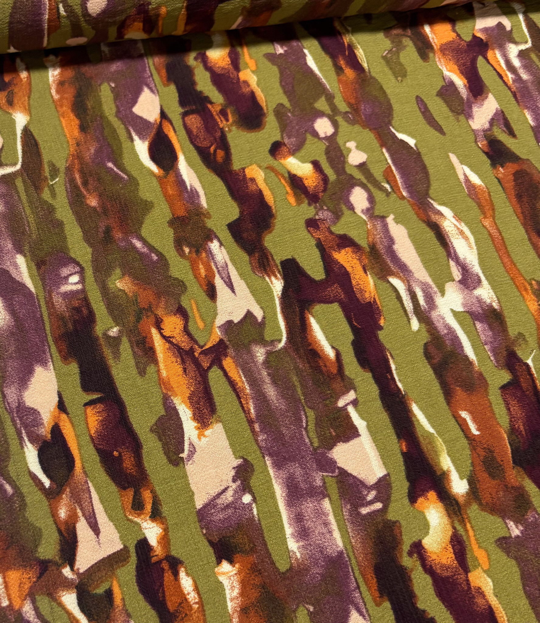 Mooie, kwalitatieve viscose met groene abstracte print.