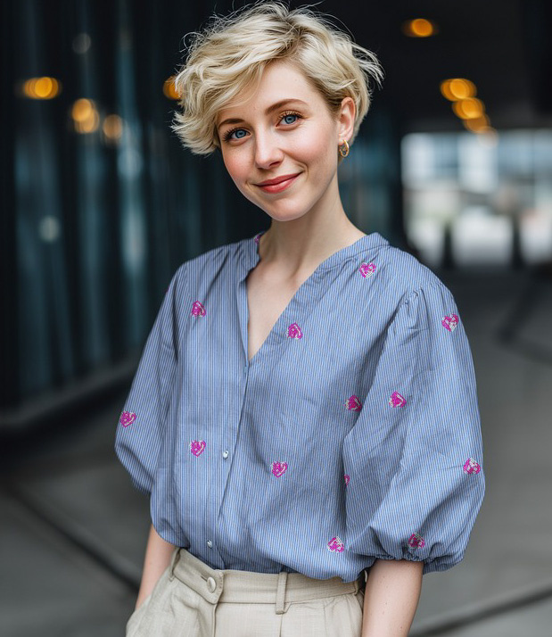 Een prachtige katoen met geborduurde pailletten in hartjesvorm.