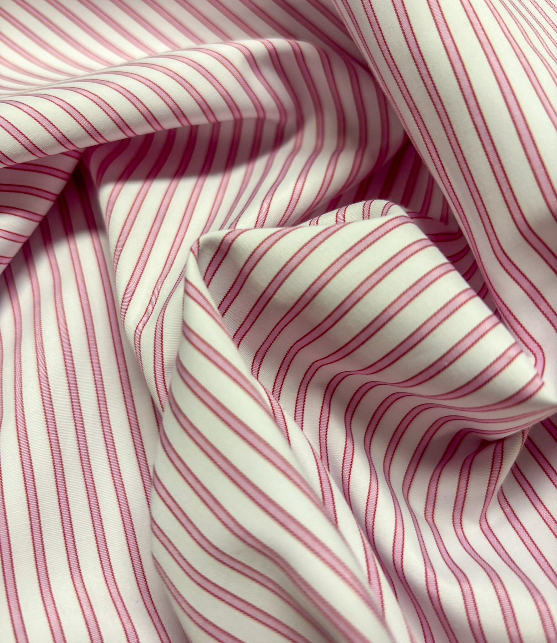 roze wit gestreept hemdenkatoen - Madeline de stoffenmadam - Stoffenwinkel Lier ( Antwerpen )