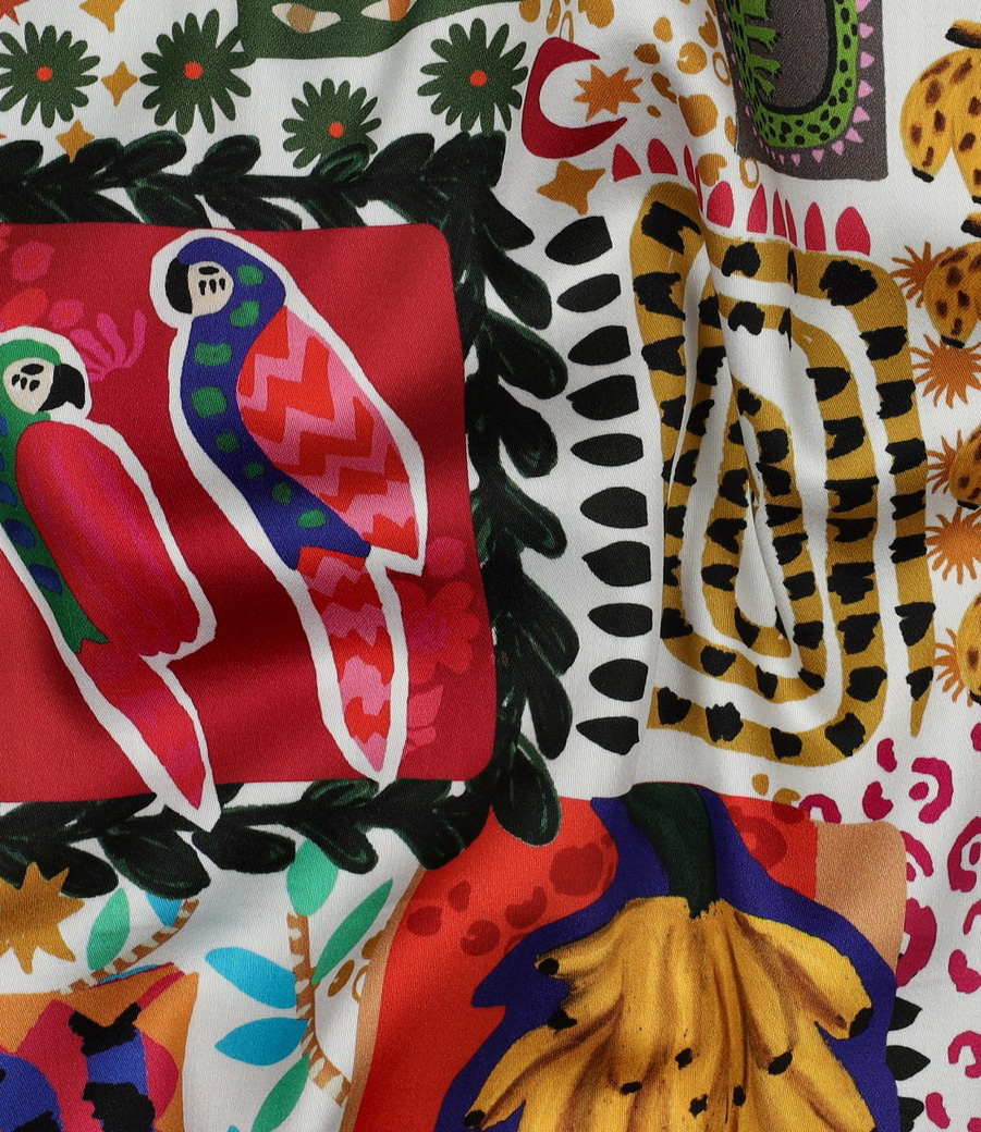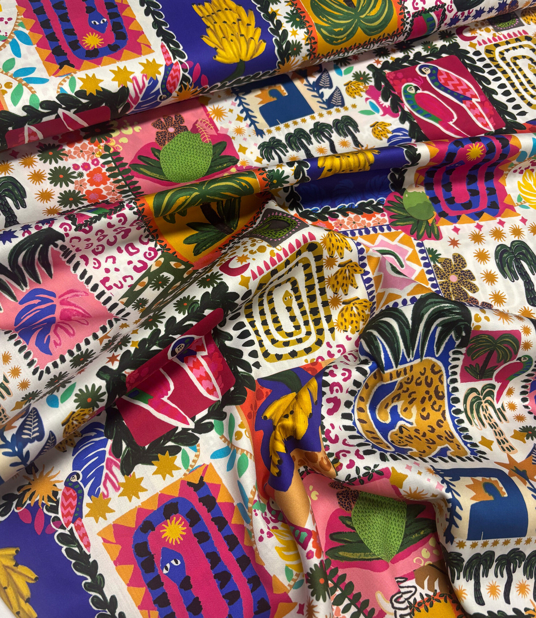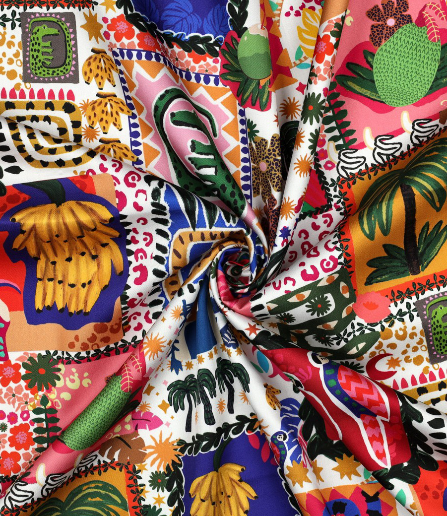 Een zachte, soepele satijn katoen met patchwork print uit 100% katoen. Alle voordelen van katoen en de subtiele glans van satijn. Ideaal voor blouses, rokken en jurken. Deze stof wordt gebruikt in het naaimagazine Poppy meets Pommé.