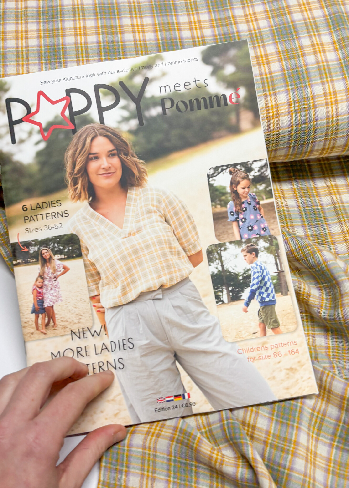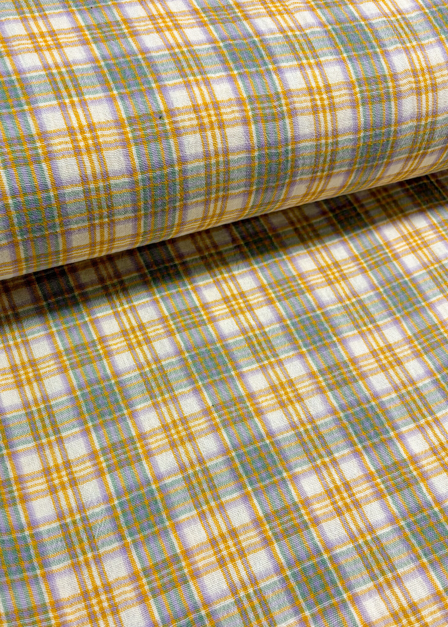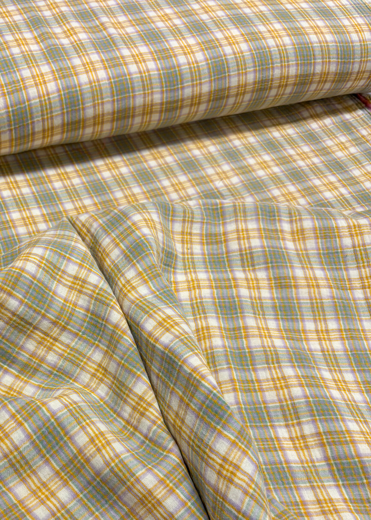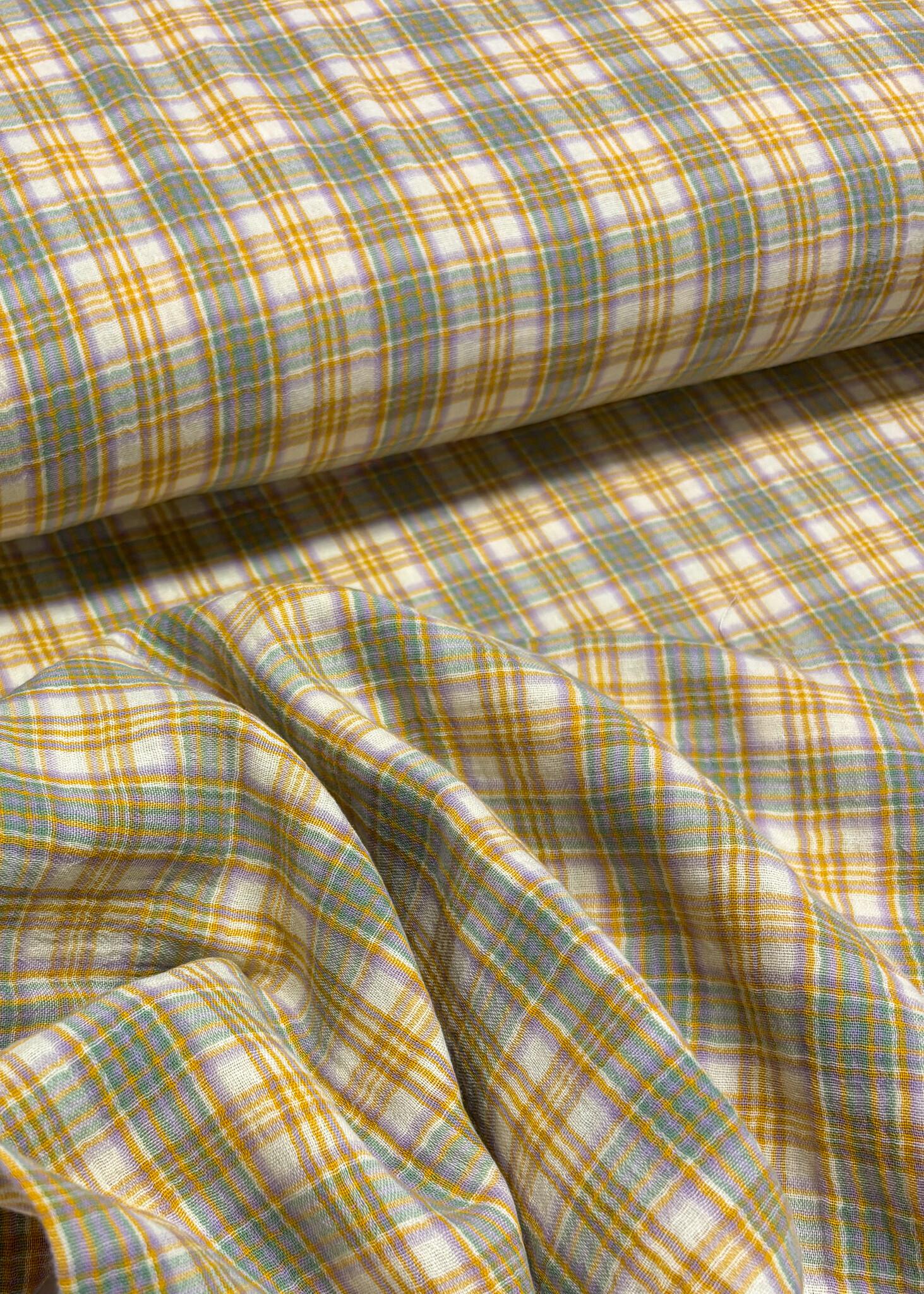 Prachtige double gauze met ruiten (tartan print). Deze stof wordt gebruikt in het Poppy meets Pommé magazine.