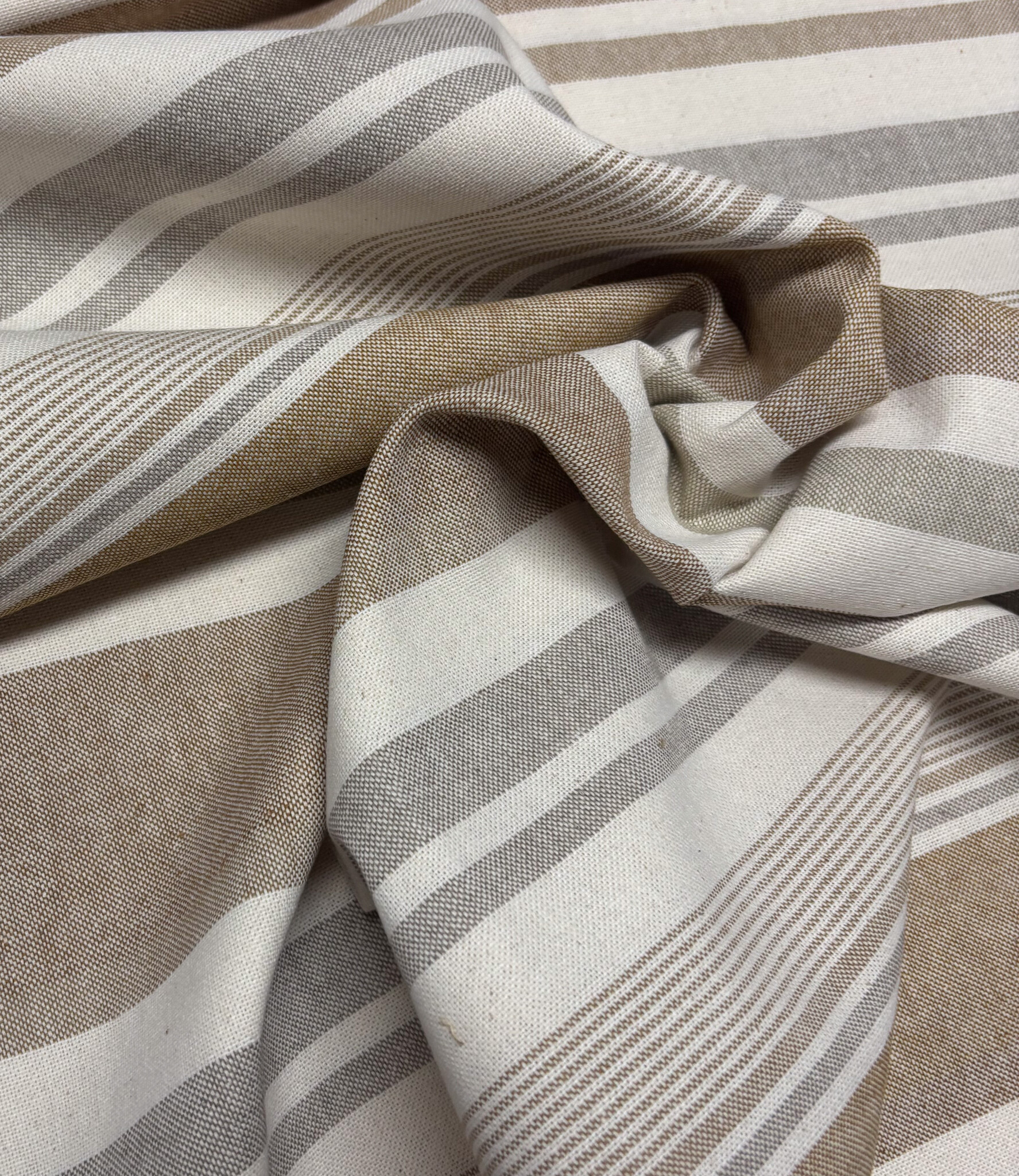 Mooie en zachte canvas stof met strepen. Een stof die eruit ziet als denim, maar veel dunner is. Gemaakt van plastic flessen (13%) en gerecycled katoen van fabrieksresten (87%). Een 100% gerecyclede stof. OEKO-tex.