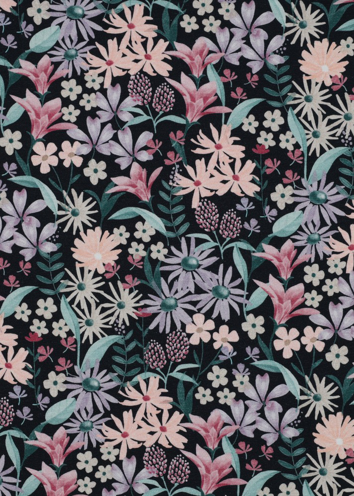 Mooie kwaliteit tricot met bloemen. Heerlijk zacht. Oeko tex.